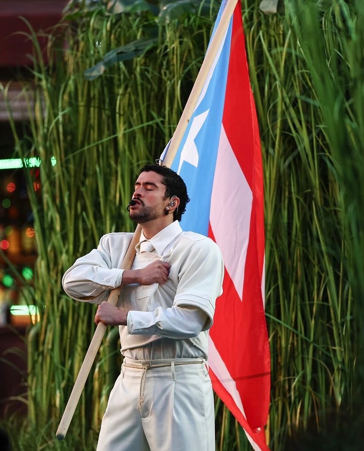 堅持以西語創作、表演,並且融合拉丁傳統音樂,從音樂作品到造型呈現,甚至到超級盃上的舞台設計,都能感受到Bad Bunny與家鄉波多黎各的強烈羈絆,他會在歌曲中探討殖民主義以及移民議題,也會強勢發言自己不會為了迎合市場而改唱英語,更曾在舞台上喊話「波多黎各,請相信我,我們不僅僅是那 100x35 英里的小島,沒有什麼是我們無法成就的」展現小地方的無限可能。