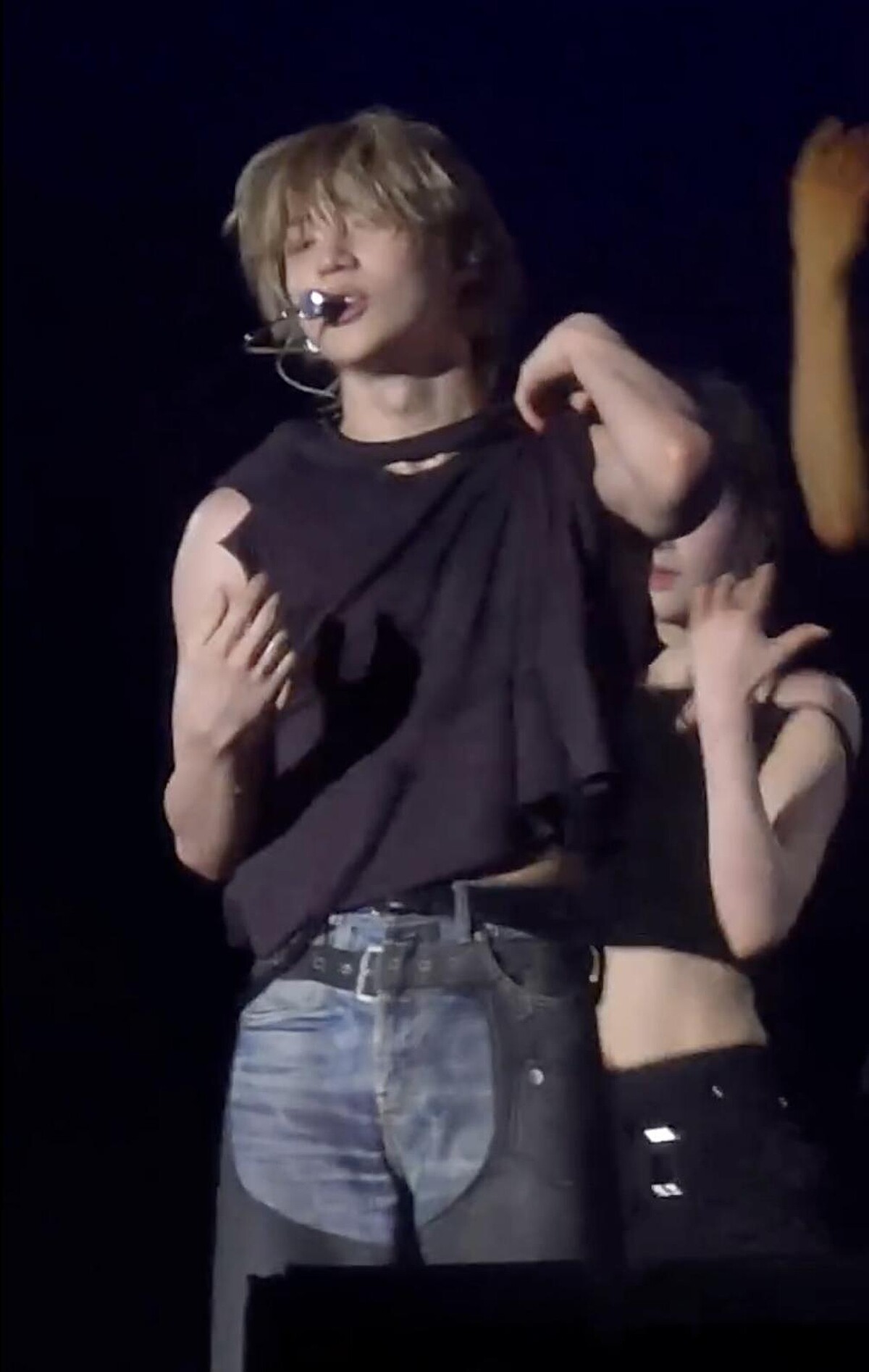 最經典的部分來了!泰民發現走光後,第一秒下意識用手拉住衣服,眼神閃過一絲慌張,隨後竟然對著鏡頭露出了孩子般害羞的笑場。但緊接著下一秒,他立刻收起笑容,變回那個專業的表演者,走光、笑場直到放送結束。這種在「害羞弟弟」與「帥氣表演」之間無縫切換的瞬間,讓這段影片至今仍是無數粉絲心中的純慾經典畫面。