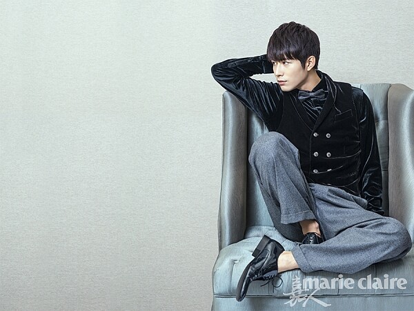 拍照的時候陳學冬不大笑,他當然知道自己不笑的樣子很俊,在酒店拍照片,沙發上鋪著白床單,他坐在椅子上以極其熟稔的定格輕微地挪動頭部,不停調試著臉上的表情,身上披著華麗的黑色毛毛的喬治·阿瑪尼大氅,樣子非常之小時代,但一旦你和他坐下聊,你又發現他其實蠻愛笑的,他笑的時候,臉頰會收起來,顴骨下憑空出現幾道笑紋,這讓他看起來特別天真,這也許是他在鏡頭面前不大笑的原因,畢竟,90後粉絲們更喜歡的是他冷冷的那副霸道總裁的樣子。