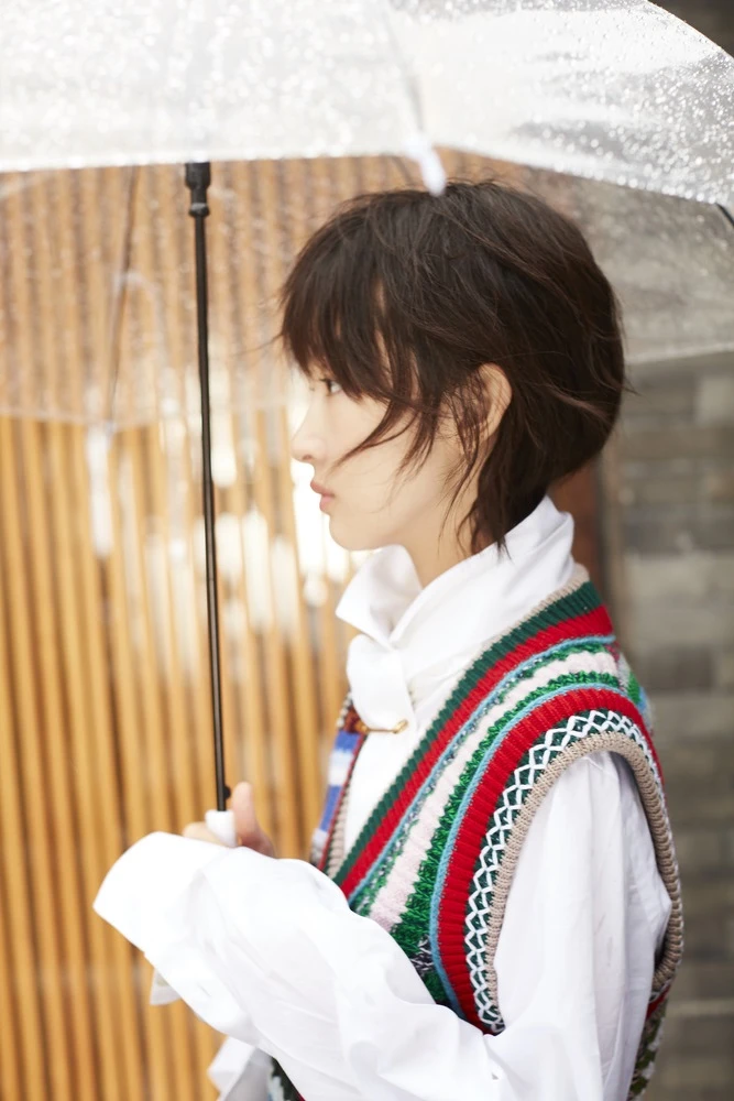 八月底的一日下午,下著滂沱大雨,氣溫降到了十幾度。我們在老北京的胡同裡等著周冬雨現身。瘦小削肩的她,裹著一條毛毯,悠然走進拍攝場地。傘下是小小的臉蛋,佐著白皙到幾乎透明的膚色;平平的單眼皮眼神靈動,晶瑩的淺咖啡色瞳孔轉啊轉。不似一般中國一線女星的艷麗大氣、高調奪目,素雅精巧、氣質可人的周冬雨,用自己的方式在極度競爭的中國演藝圈闖出一條康莊大道。