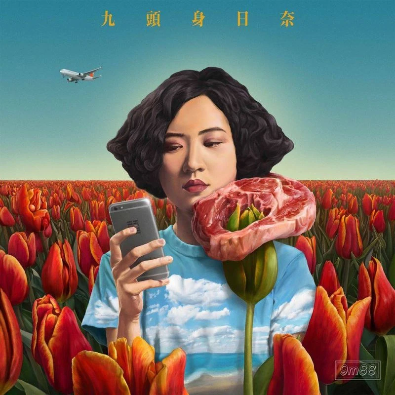 尚未簽入任何廠牌,以獨立音樂人之姿,僅僅獨立發行兩首單曲的 9m88 已經得到極大的注目,說她是地下圈的第一女伶也不為過。2016年底,顏社的饒舌創作人Leo王發了〈陪你過假日〉,這首男女對唱的歌曲讓 9m88 一夕爆紅,而後更推出單曲〈九頭身日奈〉。節奏單純帶點chill的這首歌,有著朗朗上口的 Lofi 極簡旋律,歌詞也完全表露出酷妹的九○後風格。「Joanne 她唱爵士樂卻沒有紅,只好去賣大腳桶;Lisa 有一點辣蕯,衛生棉亂丟都無關痛癢;Janet 只想要一點愛,上 Tinder 卻沒人 like…。」從歌詞到復古的唱片封面都讓人會心一笑。