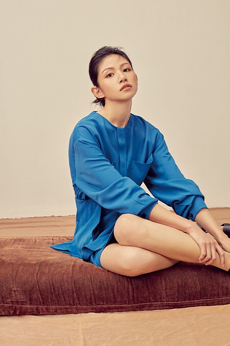 藍色絲質洋裝,Sportmax