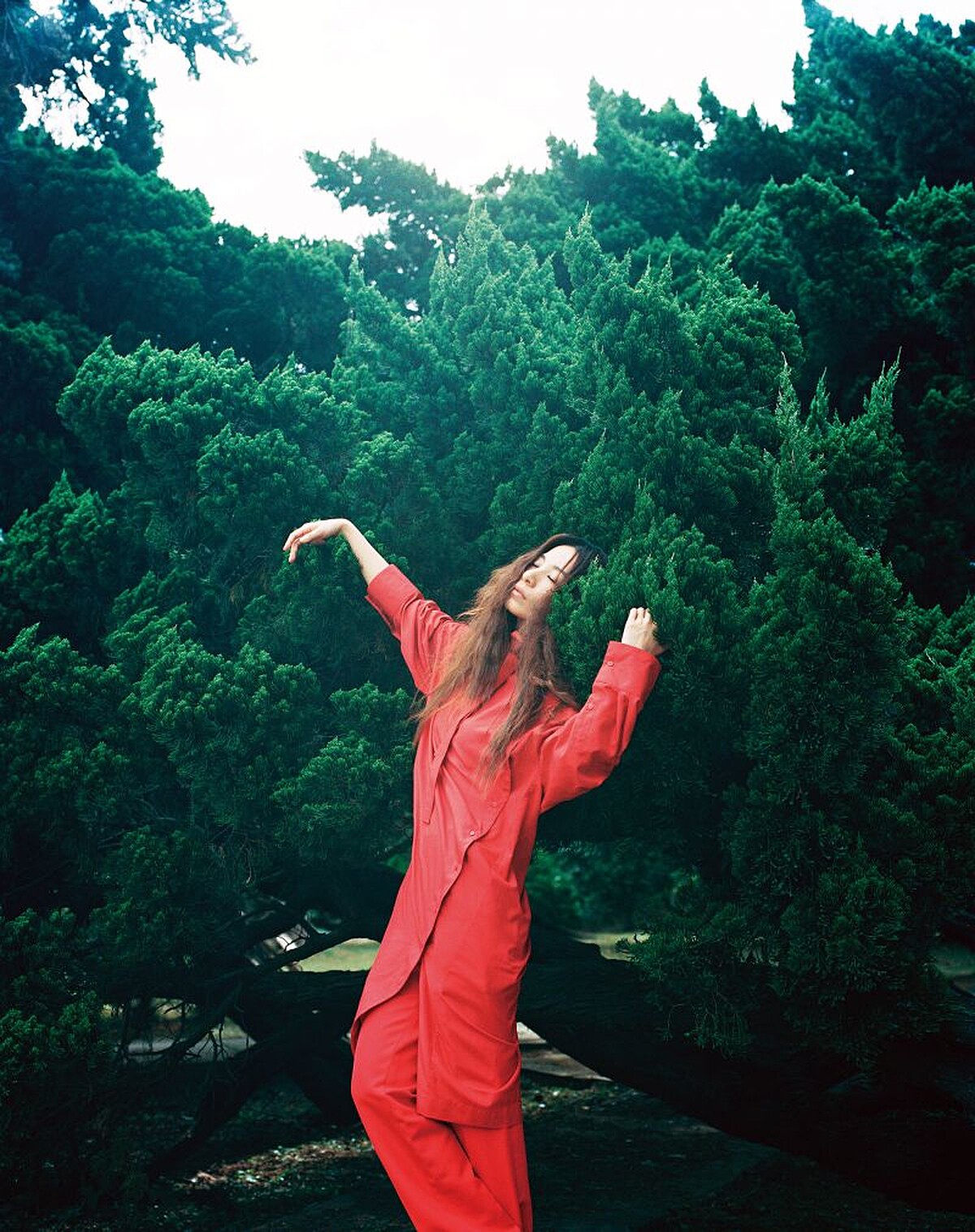 身處一片綠意的 Hebe,在眾人眼中絕對是最亮眼的一朵花,但她自己可不這麼認為,「真的要用花來形容自己的話,過去的我比較像是海芋,筆直且一體成型模樣,就跟我的個性很像,不拐彎抹角,很直率,一方面也像海芋向內捲的變形葉子,大部分時間讓人感覺害羞。」而現在的她,卻說「蒲公英」是現階段人生最佳寫照,「風把我帶往哪裡,我就去哪,安然地處在一種狀態下。」Hebe 泰然自若地說著。