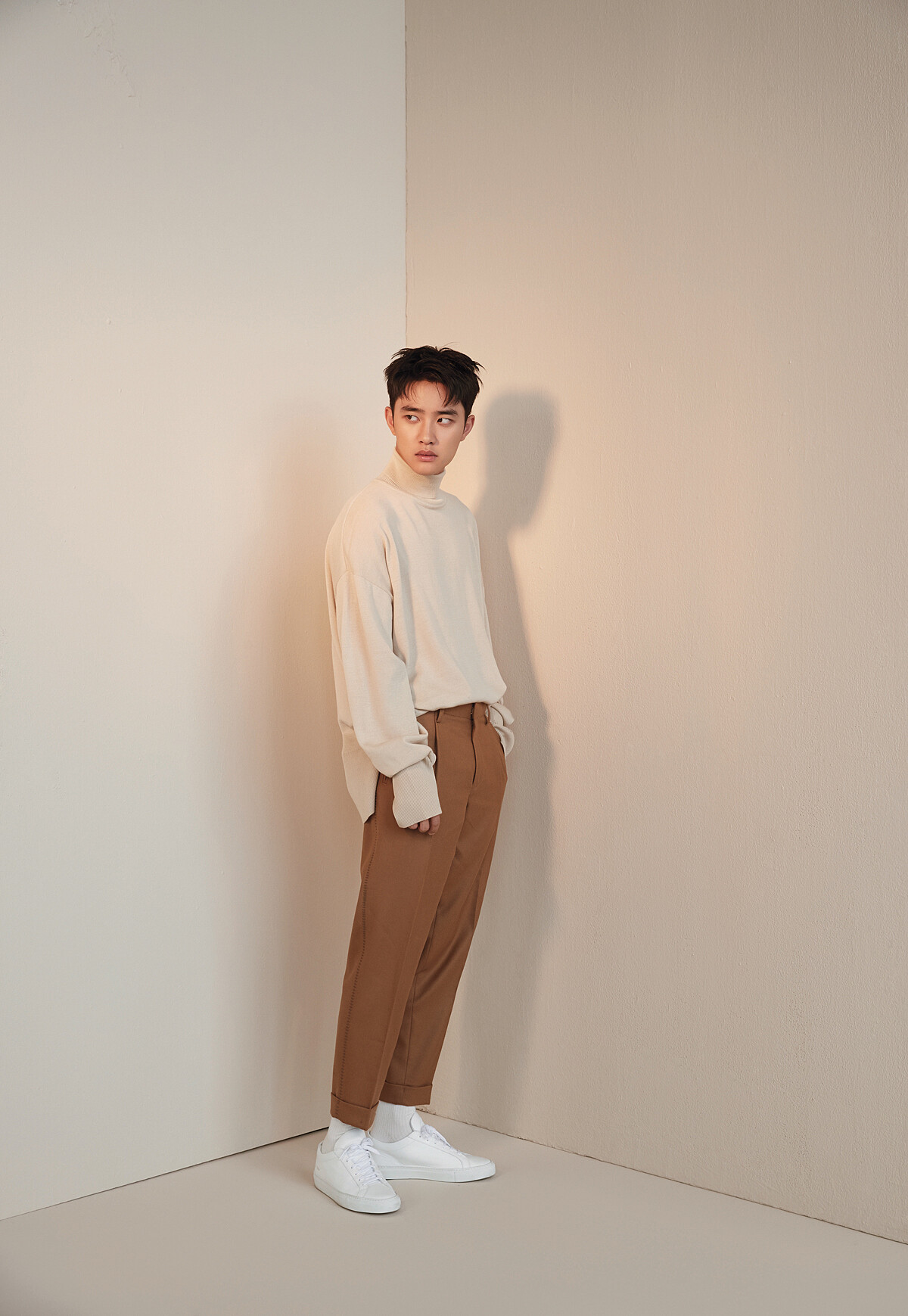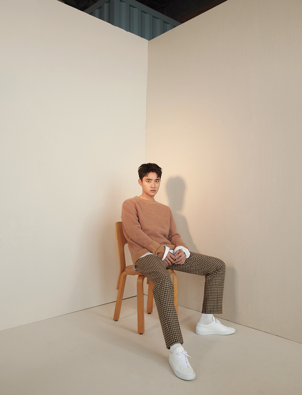 即將進行拍攝的此刻,一位穿著格子襯衫與棉褲的年輕人悄悄步入攝影棚,如果沒有工作人員隨行在側,我們很難發現他就是「能唱會跳又會演」的都敬秀。今年25歲的他,2012年自韓國偶像團體EXO出道,以澄澈雙眼、溫暖笑容以及強大歌唱實力擄獲粉絲的心;前不久,由他主演的首部電視劇《百日的郎君》,更締造TvN電視台月火連續劇開播收視最高紀錄。