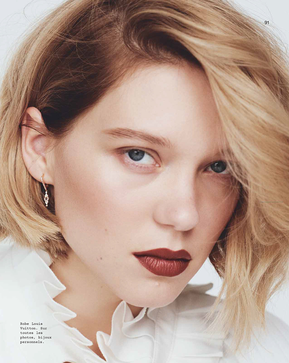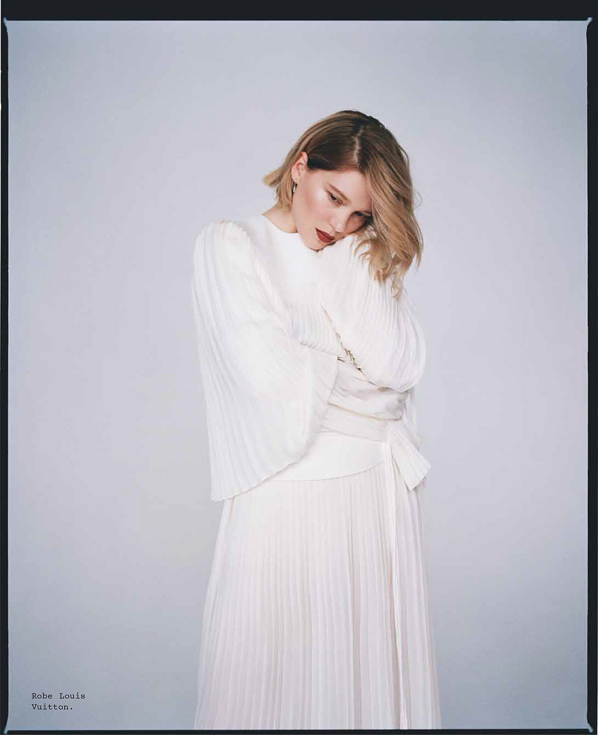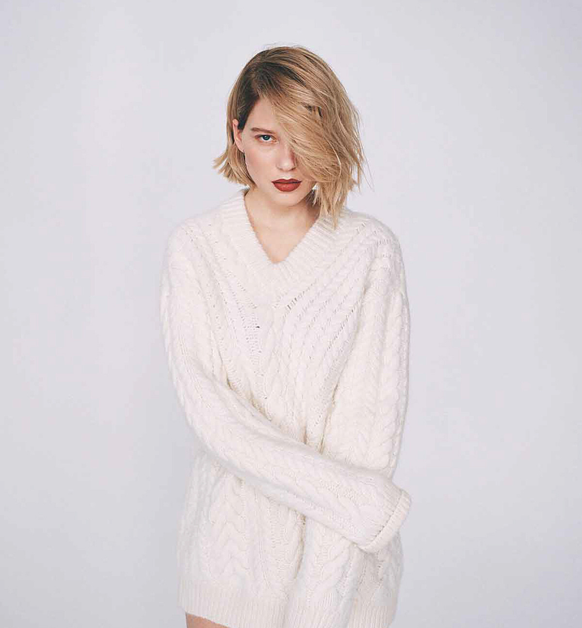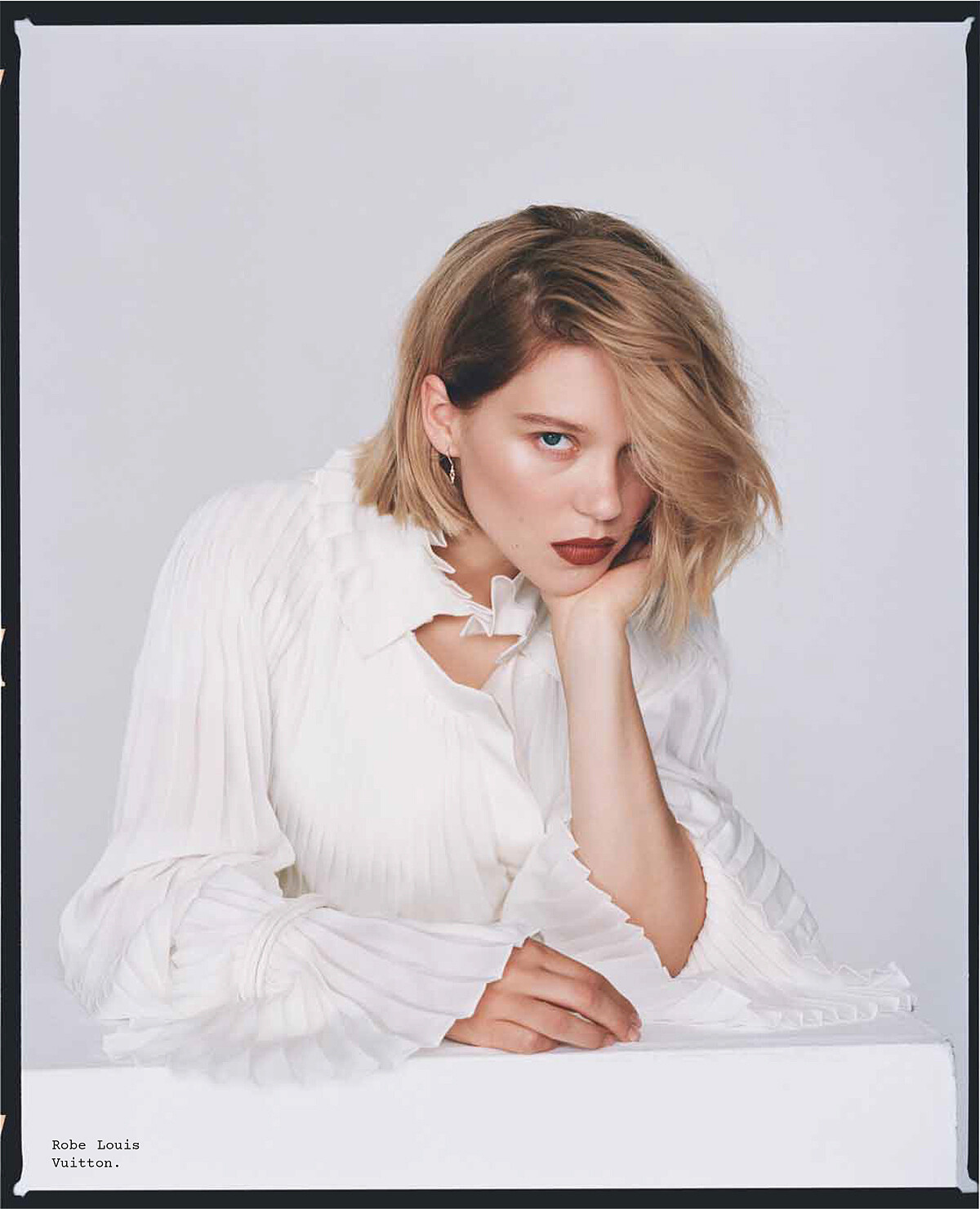 週一早上九點,空蕩蕩的攝影棚,Léa 打了一個哈欠,文字慢慢地從她口中洩出,寂靜緊跟著她的斷句再度充斥棚內。她在尋找文字,若是靈感尚未乍現,她會自我解嘲,在如同警察局審訊室乾淨的房間裡,這場訪問卻像和法國女文豪莒哈絲對話般的讓人眼睛為之一亮。即使她尚未睡醒,Léa Seydoux 依舊驚艷動人,她是那種即使哭了也還是美麗的女生。無論她有沒有空,她都固執的再次回來,以最初採訪時的質感,她的名字剝奪她可以固執反抗的權利。兩個月之後的早上七點,我們再次在香榭麗舍大道上的一家咖啡店見到她,難得地化好全妝,她已閱讀過我們先前的採訪,但她想要平反:「對你們來說,這或許只是又一名女星的另一篇採訪,但對我來說,我採訪中說的每一句話,每一個觀點都將會貼標籤跟著我一生。」