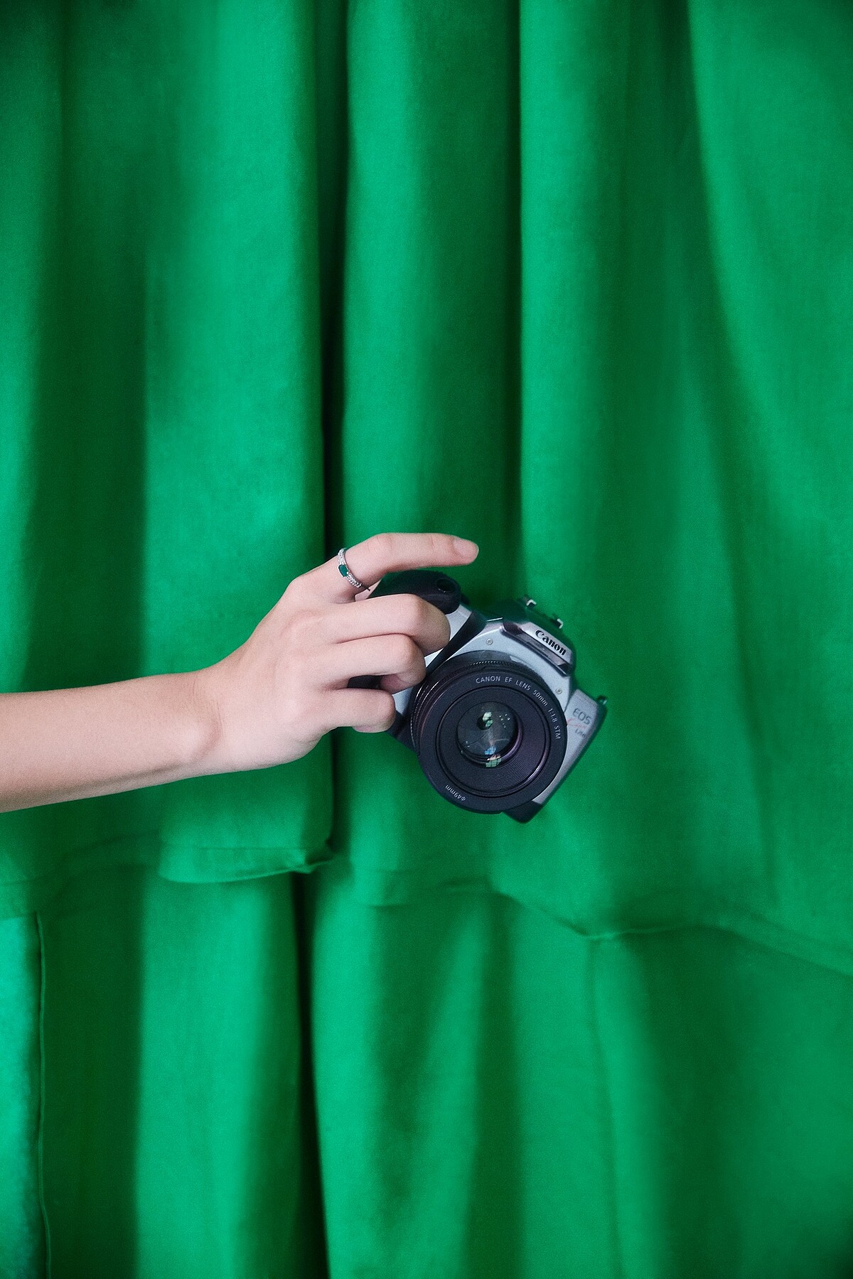 一開始是連身泳裝,後來是刺青貼紙,而攝影這個媒介,讓她得以讓更多人看見其創作。「我一直在想如何讓攝影更有層次,想要思考可以讓別人互動的作品,或許像〈我樹著打給你〉那樣,跳脫平面,讓觀者感同身受,更真實一點。以前的藝術靈感像是青春的愚勇,現在比較像是生活觀察,可能跟別人聊天的瞬間,靈感突然就來了,所以我都會隨身用筆記本紀錄。」