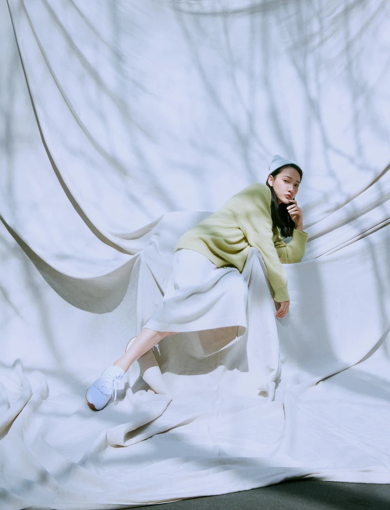以簡單質感為基礎,在這之上小美會疊進各種風格,休閒或正式時不時輪番出現,但對她而言最主要的元素就是中性。「我喜歡在女性特質的服裝中帶出中性的感覺,比如說運動風和球鞋的穿搭,我就會用比較有女人味的針織窄裙來搭配。寬褲如果搭配貼身上衣太性感的話,就會配一件男友風的襯衫。」