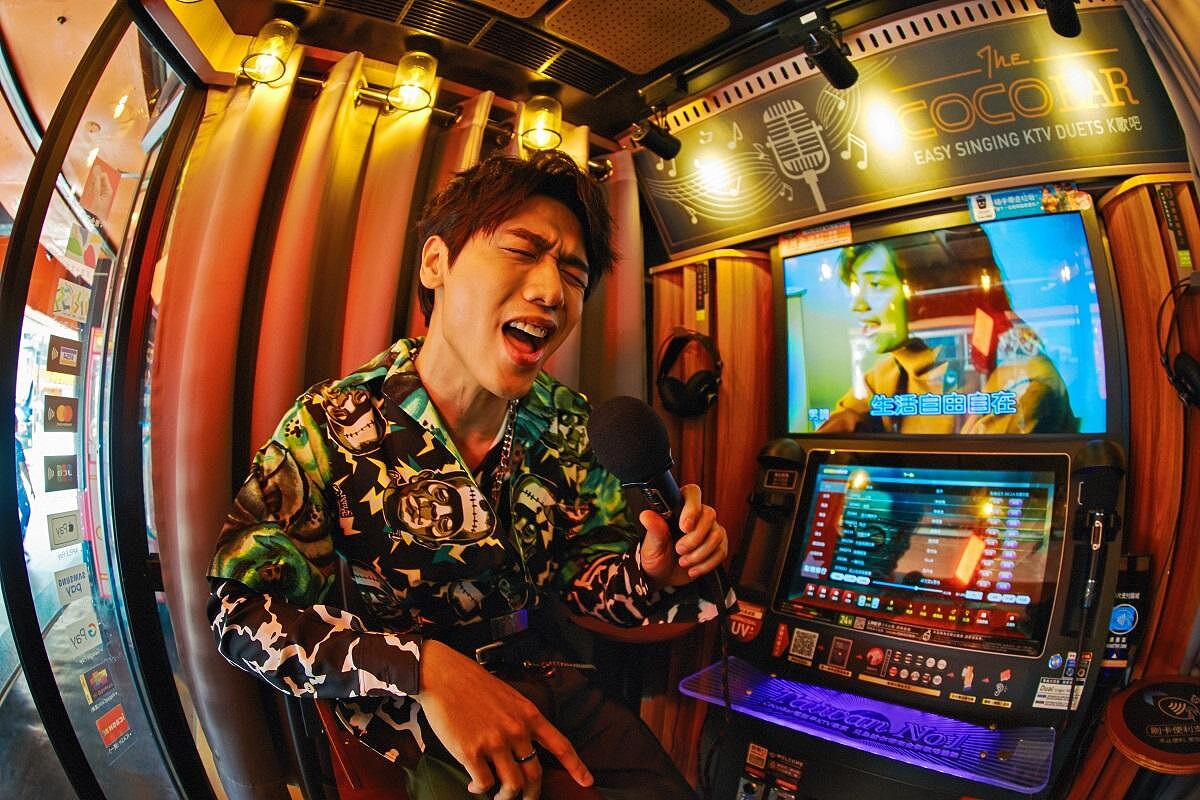 他真的唱開了,「我覺得有一點喜歡這個!我有一點點幽閉恐懼症,如果在非常小的空間裡,喇叭很大顆很大聲的話,我會很緊張。比起一般KTV,我比較喜歡這樣子的環境,音樂沒有放到最大聲,能看到外面,其實滿舒服的。在路邊唱歌有一種很隨興的感覺,跟氣溫、濕度都有關係,然後加上音樂,會有一種化學作用。你看像機車經過,也會變成表演的一部分,我覺得這是一件非常有趣的事情。」