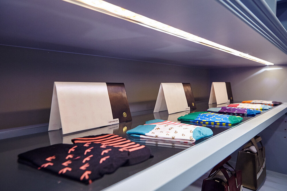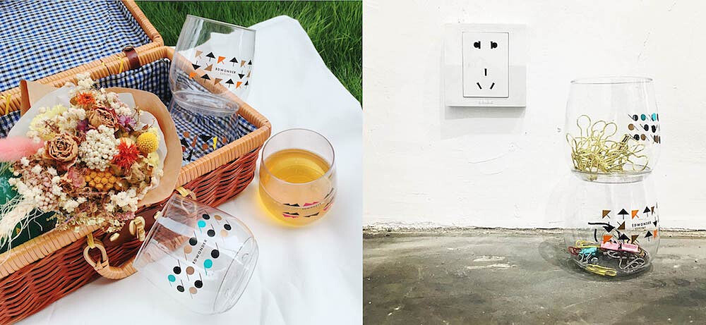 這個系列含括了襪子、帽子、方巾、服飾等等,處處可見品牌的幾何圖案在隱隱之中不經意向妳招手,今年春夏推出的攜帶式酒杯更充滿奇趣,看似玻璃杯、卻是無毒BPA塑料製成;杯底與杯口的接合專利技術,讓杯子可無限聯結,讓它不僅是水杯、酒杯,還可做為收納與擺飾。這杯款可是與美國專業環保製杯品牌TOSSWARE合作,打造出的Tumbler Jr.攜帶式系列酒杯。