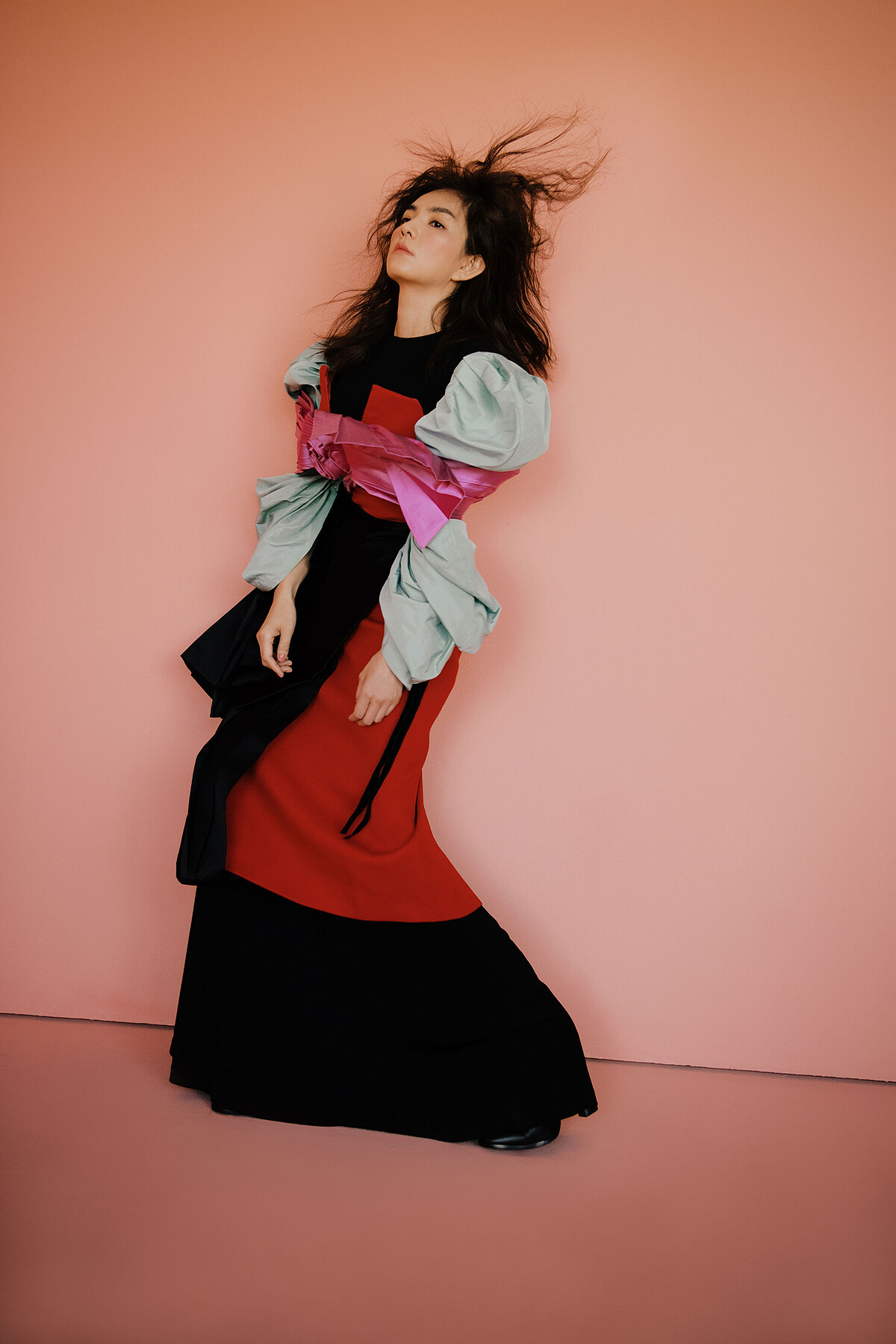 在拍攝的間隙,勁寶在家人的看護下在攝影棚裡玩得正樂。哪怕再忙,帶著勁寶和老公來到攝影棚,已經成為 Ella 的日常。「會把勁寶帶來棚內,一方面希望他能了解媽媽的工作,另一方面是,在家裡看不到麥克風、攝影機和這麼多工作人員,可以讓他知道這個世界很大,有各式各樣的事物等著去探索。」現在的 Ella 有點像在電玩遊戲最終關卡裡打敗大魔王的女勇士,幾年的時間,她似乎脫胎換骨,從歌手到演員,從少女到母親,讓她成為了一個從內到外,優雅又堅毅的完美女人。