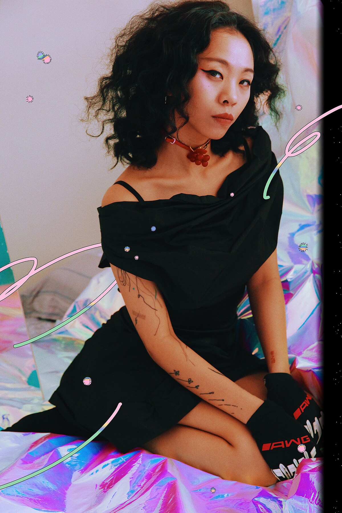 海瓜子本人的時尚感完全不是「低級失誤」裡的純情少女系,她喜歡設計師的作品,有時候會混搭從二手市集買來的服裝,華麗而復古,帥氣而性感的樣貌閃閃發光。「我常常會被說穿得很華麗,也好像不是當下這個年代的樣子,因為我會收藏過去設計師的作品,像是 McQueen、Jean Paul Gaultier、Vivienne Westwood 和川久保玲。」