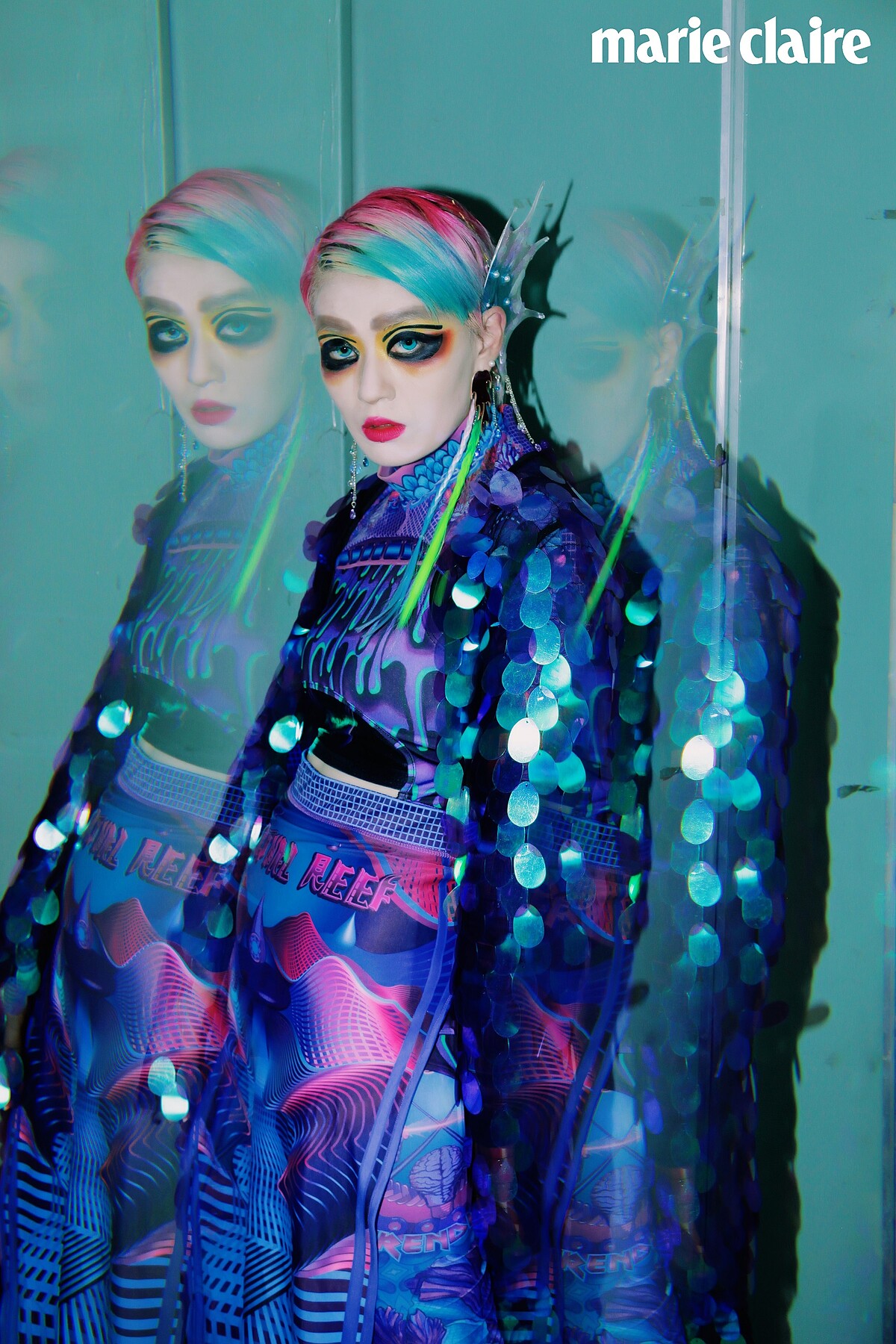 「我的穿著風格是由音樂文化開始燃燒。」她開始實驗將喜愛的元素混搭疊加在身上,「還真沒辦法定義自己屬於什麼風格,概括來說應該是前衛吧!所謂前衛不是要多潮流、未來感,而是搭配出前所未見的風貌。我覺得自己是彩色的,身上有色彩能讓我產生自我存在的特殊性。每個人出生即原創,何必長大之後反而成為他人的複製品?」