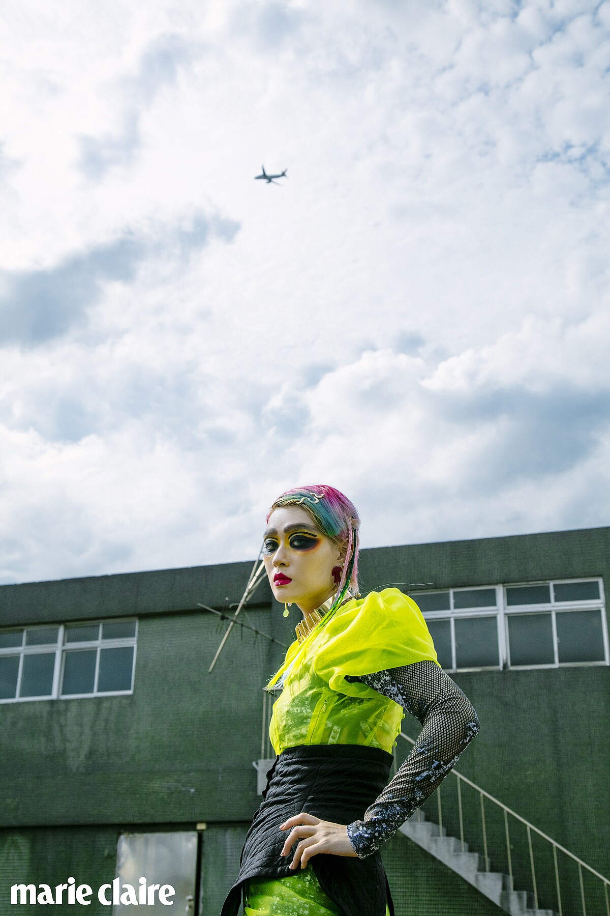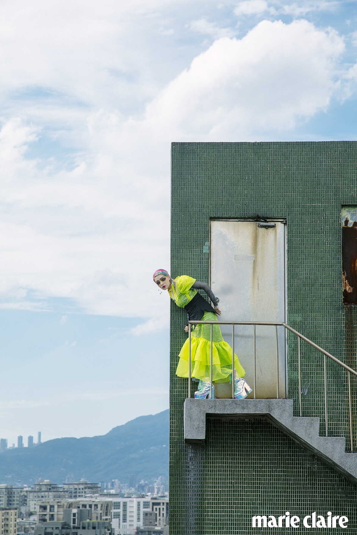 但在層層衣物顏色底下,她是個平凡的上班族,九點半打卡,晚上八、九點回到家,抓午休空檔在社群發一下穿搭照,利用晚上和周末寫歌、練團、製作影像。「我也只是個熱愛奇異打扮的普通人而已。」她輕輕地說。