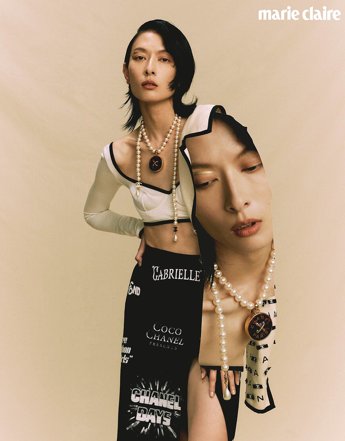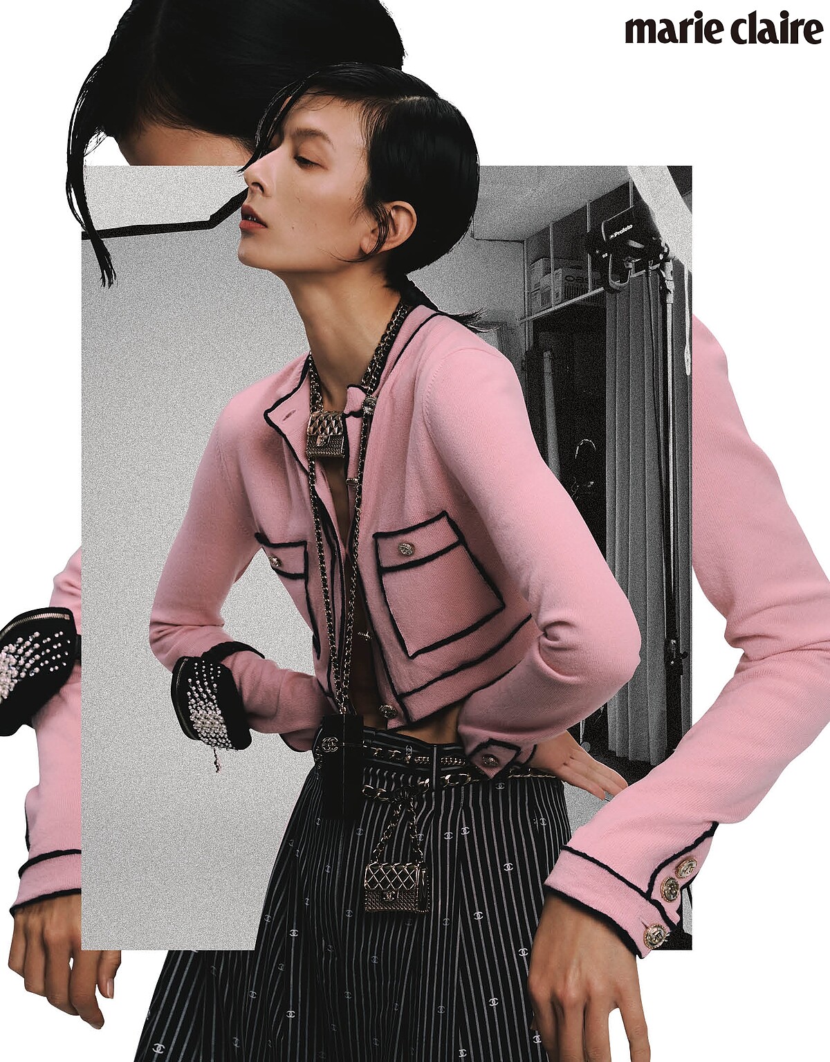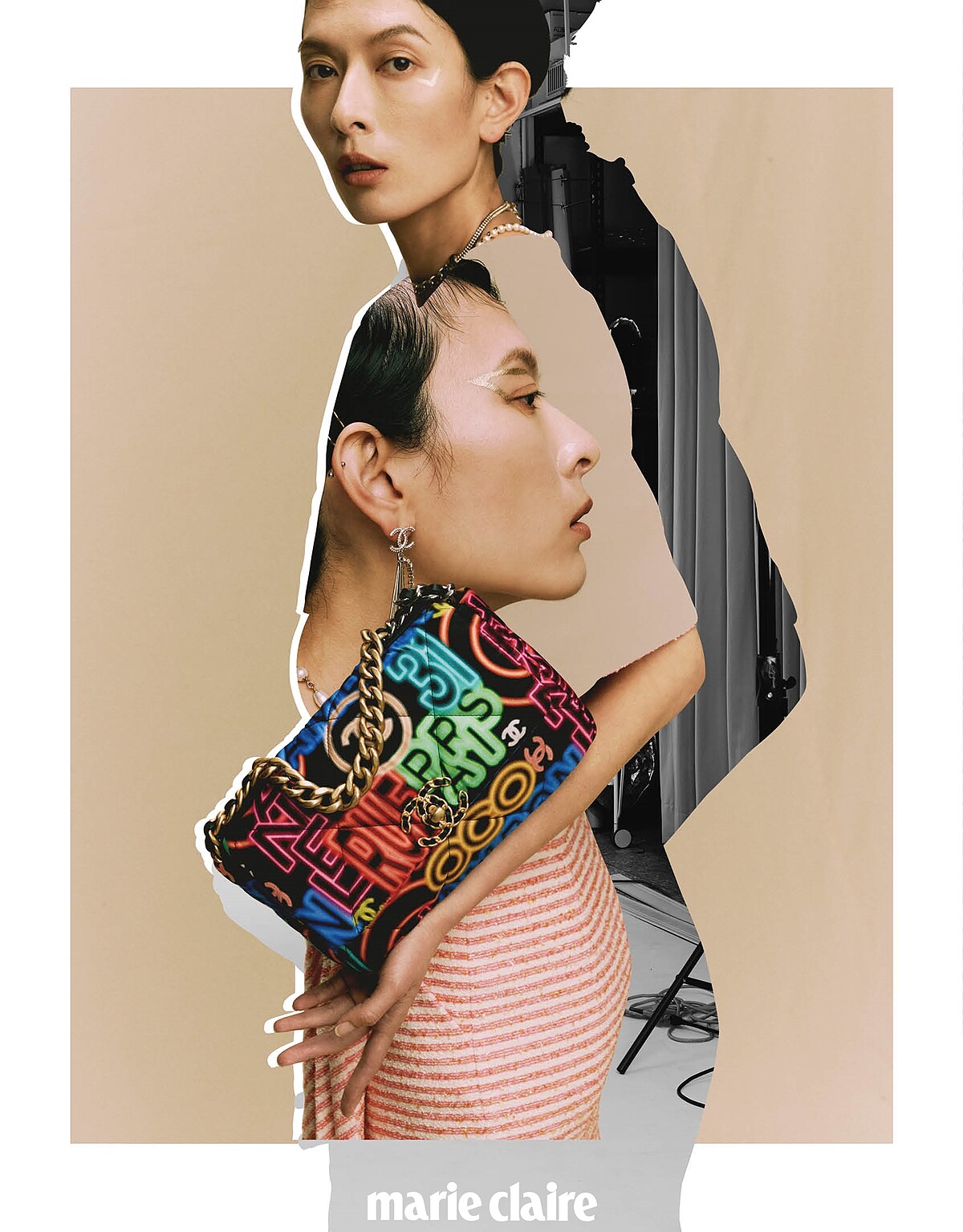 在拍攝現場,欣瑜專業地在鏡頭前變換姿勢,她可以是沉靜優雅的仕女,也能是好萊塢新潮女星,在她演繹下的 Chanel 2021春夏系列,是當代女人能夠擁有多變、立體樣貌的生動例證。和 Chanel 一直有著密切關係的她說:「或許是品牌在我身上看見跟他們定位相同的女性特質──獨立、自主、勇於挑戰和不畏改變。」上個世紀的香奈兒女士即是如此,而欣瑜在私著風格上擁抱中性氣質、對簡約寬鬆裝束的偏好,想必也會受到香奈兒女士青睞。