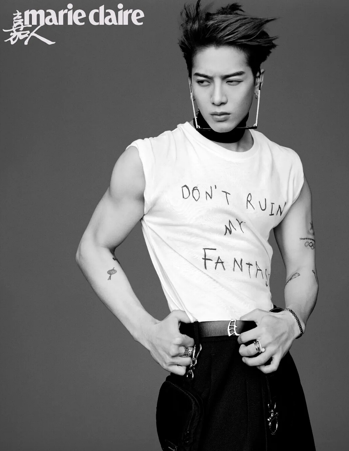 當下,他還有兩顆子彈在手,蓄勢待發。上一秒,王嘉爾故作正經地說自己沒有藏著大招,早已將自己在鏡頭前毫無保留地展露無疑。下一秒,他又笑著戳穿自己,第一季度推出的五首歌只是序章,還藏著二十多首歌尚未公開。「從現在到年底,我有兩顆子彈,兩顆大子彈。一顆子彈是個人專輯,會呈現Jackson Wang個人的內容,在今年年底會發布,涵蓋許多MV、表演視頻,是除了舞台之外,自己準備的表演視頻。另一顆子彈呢,是噠噠噠……」他模仿起子彈出鏜射向靶心的聲響,神秘了起來。如果非得再讓他補充點兒什麼,王嘉爾說,「目前為止27年來,我有多少『貨』都在這兩顆子彈裡面。現在的王嘉爾,現在的Jackson是什麼樣的,都藏在兩顆子彈裡。」
