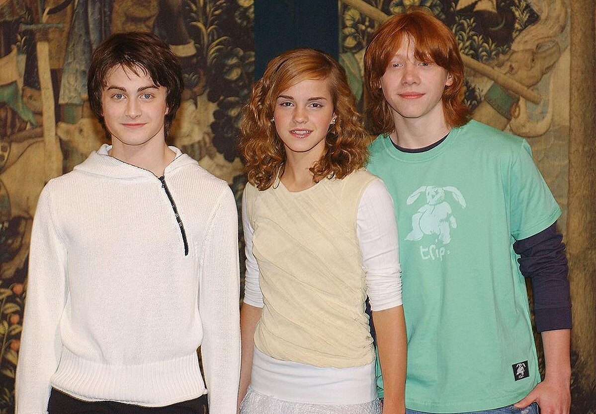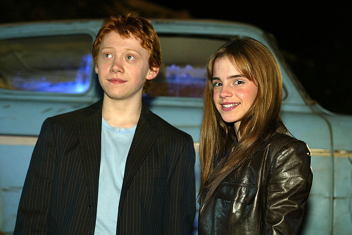 雖然實際上她與《哈利波特》兩位主要演員-丹尼爾雷德克里夫(飾演哈利)和魯伯特葛林特(飾演榮恩)在片場一起長大後關係密切,成為了最好的朋友。她稱他們為兄弟,但在 12 歲時,她迷戀的是壞男孩-馬份-湯姆費爾頓(Tom Felton)。