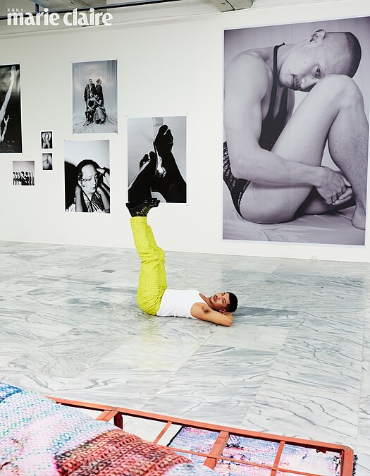 於此將「不論男女性別,都有純粹陰性美感Power」,呼應著第三展間「亮室」裡,中間置放著《複寫:認同__父親的錄影帶》曾出現的床,被褥和地墊為父親和自己的錄像圖案,觀照著兩面黑白、彩色的酷兒群像和爸爸、阿嬤的照片和書信縮影,寓意著「從隱晦走向光明,面對羞恥的美感!柳暗花明又一村,喚起我們坦然面對家與性的自然關係,一切都能很有自信地去說去看,沒什麼是見不得光,就算是羞恥,也是一種美感,沒什麼好隱藏。」正如他在攝影集中想闡釋「去他的沙文悲劇,Let’s羞恥運動」。