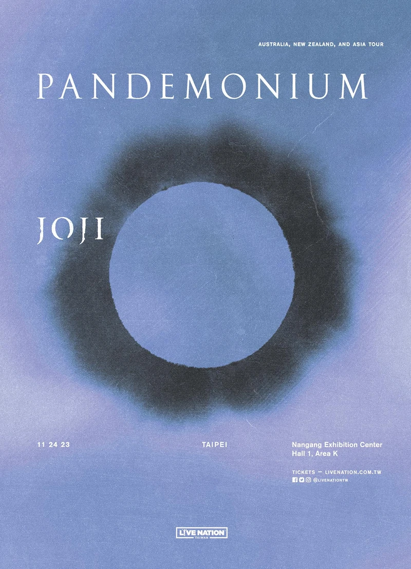 卸下各種有趣人設的JOJI比起以往更專注於音樂領域的發展,這場名為《PANDEMONIUM WORLD TOUR》是生涯第四度大型巡演,9月開始一路從北美加拿大到紐澳地區,11月24號首度唱進台北,早已在Z世代掀起一陣討論的他,絕對值得大家一起用雙耳沈浸在屬於他的音樂世界中。