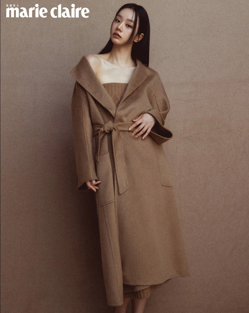 本次以 Max Mara 為主軸的封面拍攝,一連五套造型,惠利與團隊合作無間,以精氣神聯動完成這次的拍攝,從室內到戶外,構築了品牌標誌性駝色意象,不同造型像是對惠利的人生表述,泰迪熊大衣與靴款的俐落兼具童趣、品牌經典Sartoriale正裝外套與長裙的清新雅逸、101801大衣加上棒球帽與絲巾小可愛的個性混搭,再到Ludmilla喀什米爾大衣與網格駱駝毛料長裙,以洋裝穿法呈現的輕熟感性,每一套都讓人印象深刻。