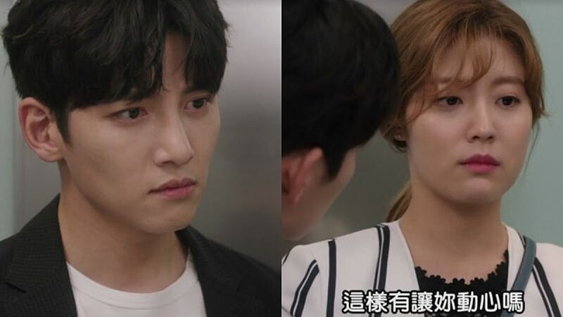 池昌旭的撩妹第三招,跟心上人單獨在電梯裡可以做什麼呢?當然是要進行身體接觸,直接伸手想要解開南志鉉的馬尾,還說:「我不喜歡你這樣的髮型!」一邊霸氣宣言,一邊靠近對方,果然讓南志鉉心兒砰砰跳,面對池昌旭的問話:「這樣有讓你心動嗎?」鄉親啊~根本心動到說不出話啦!
