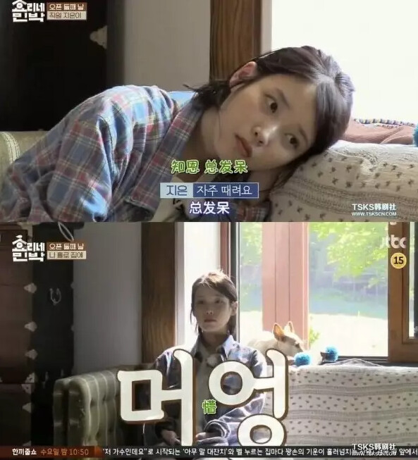 在節目中IU最常做的事情大概就是發呆,然後是一位標準的吃貨,吃到連孝利家民宿的貓咪也用嫌棄的表情看著她(是吃完了沒……,雖然是愛發呆的吃貨知恩,但料理手藝也是具備高水準,做起家事來更是沒話說。
