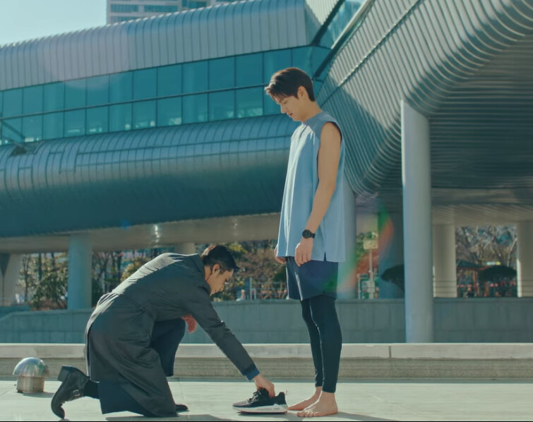 另一段李袞為了追逐神秘兔子人而忘了穿鞋的橋段,曹影拿著鞋子衝了上來,甚至下跪為李袞放下鞋子,就好像是在跟李敏鎬求婚一樣啊~(誤)