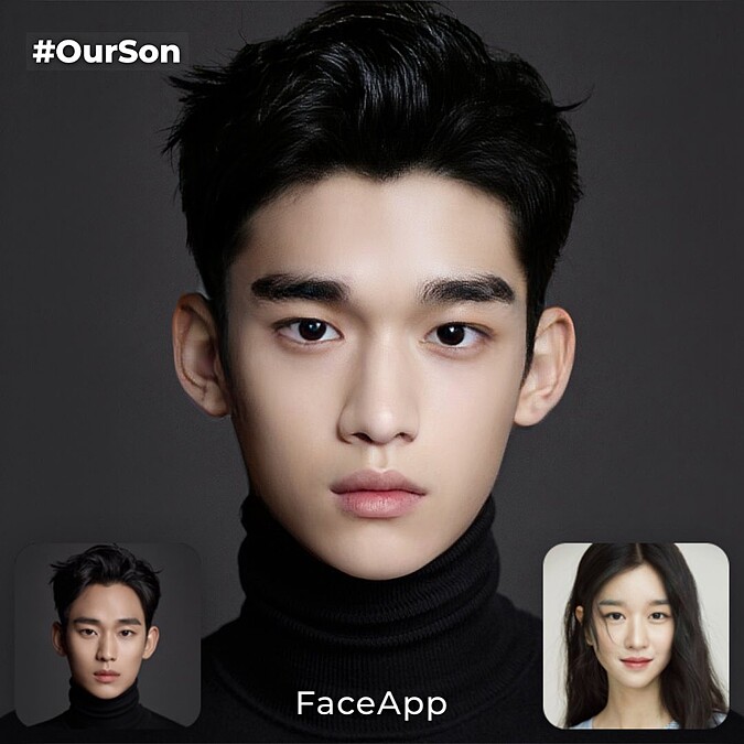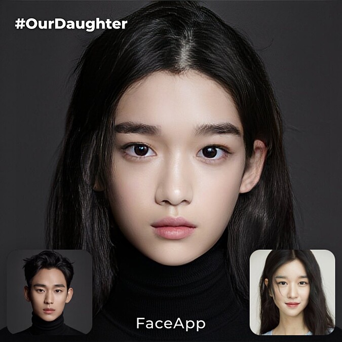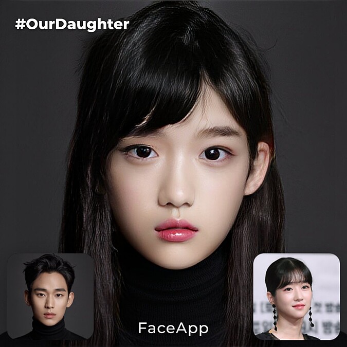 當然,故事停再最美好的高峰其實已經很足夠了,但是或許有些觀眾還真心希望看到男女主角可以生兒育女,不過可能要快轉到100集後才有可能。韓國網友為大家合成幾個未來的想像,原來如果鋼太和文英生了兒子和女兒會長這樣!透過「Face App」將金秀賢以及徐睿知的臉融合在一起,兩人實在非常有夫妻臉,虛擬的兒女,無論是用兩人的哪一張照片,愛的結晶都是超高顏值啊!不管是遺傳鋼太的濃眉單眼皮,或是遺傳文英的大眼鵝蛋臉,完全就是天生麗質難自棄!完全是吃偶像這行飯的啊!