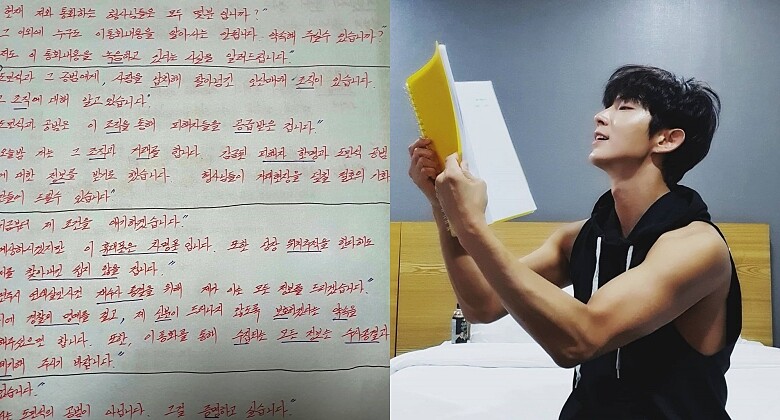 接著在大結局播出的隔天,公開了自己在備戲時的筆記,先不提李準基的韓文字到底有多漂亮,貼文中他也再次感謝這些日子以來遇到的點點滴滴,並公開了與劇中演員的點滴以及幾張自己的帥照,全文如下: