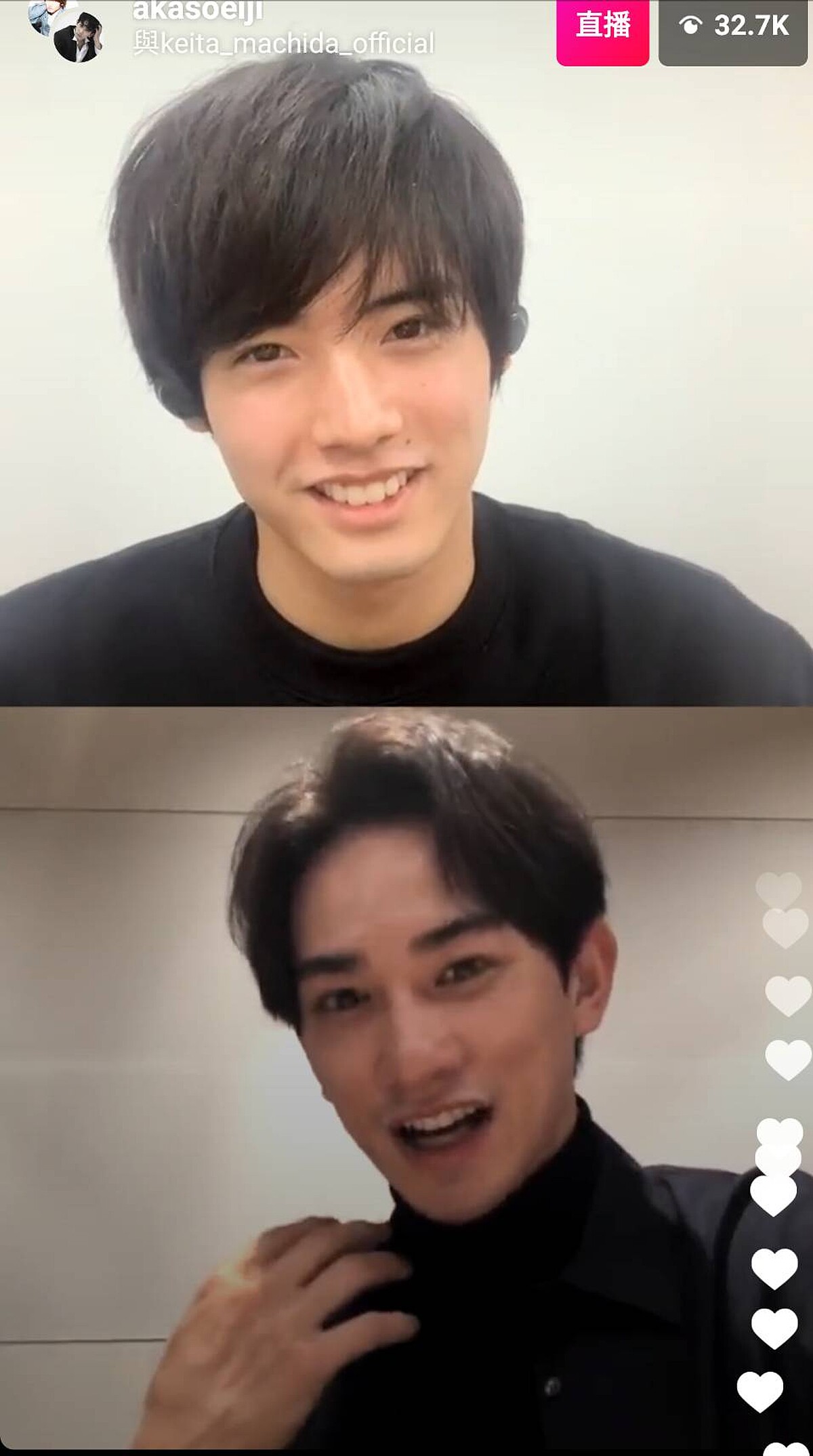 在第8集播出前,兩位主演特別開了IG直播對談,直播中,赤楚衛二主動提到已到町田啟太介紹的眼鏡行配了很有特色的眼鏡,町田則要赤楚下次戴給他看。而在回答兩人印象最深的台詞時,赤楚表示在第三集屋頂那場戲,不小心把台詞「我不討厭你的吻」說成「我不討厭和你接吻」,透過直播畫面我們可以看到他的臉上邊說邊飄著兩朵紅暈,而町田加碼說:「聽到時內心也很動搖…」,兩人一起害羞的笑,赤楚不好意思的趕快補充是作為角色”黑澤”在動搖,此時,網友已自行腦補點燃各種曖昧小火花…,這次直播也為戲創造更多話題,增加收視黏度。