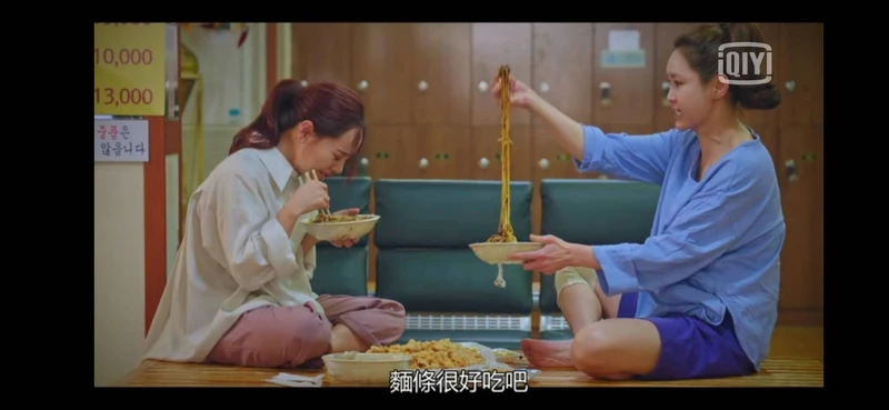 雖說編劇金順玉”教壞小孩”,但透過戲劇把人性的惡(找個比自己弱的人來欺負證明自己好棒棒)激化完畢之後,生出美好的善良情操,就是電視劇的寓教於樂功能。《上流戰爭2》姜瑪莉(申恩慶 飾)和女兒珍妮(陳智熙 飾)淪為被霸凌對象,這對母女總能開發”另類友情”,之前是珍妮背後撐羅娜,現在是姜瑪莉疼惜吳允熙,經過霸凌、被霸凌的悔悟,姜瑪莉帶著吳允熙一起打工、刷澡堂,好暫時忘記喪女之痛。兩人在勞動後,一起吃著炸醬麵,含淚吞下人生的五味雜陳。
