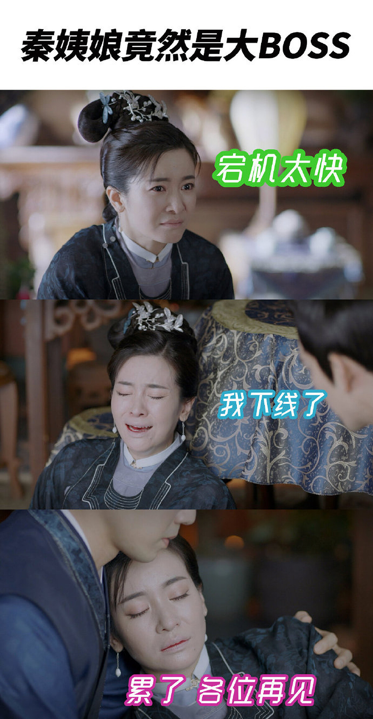 回府後,十一娘仍被徐太夫人誤會,幸好這次侯爺超有guts,終於擺脫言聽計從的媽寶男,當眾發誓「此生徐令宜在不納妾」表示自己對十一娘的真情,這舉動讓隱藏反派在也藏不住了,與歐家暗中勾結的就是喜愛花草、孩子的秦姨娘,因為當初被元娘設計,成為侯爺的妾室後,徐太夫人又怕她受正室迫害,讓她喝下避子湯,導致喜愛孩子的她再不能生育,種種的委屈積壓在心,而深得侯爺心的十一娘成為壓倒駱駝的稻草,讓她迫切想與徐府切割,但是因果輪迴終報應,歐家長子的死讓靖遠侯意難平,秦姨娘沒得到歐家應允的報酬,反而換來一杯毒酒,當她急沖沖趕回徐府,將心中積怨一吐為快後,秦姨娘也正是下線,可謂是《錦心似玉》中最快速下線卻也最可憐的反派,若她能將旁人的作為視為對她的保護,或許就不會至死仍心有遺憾。