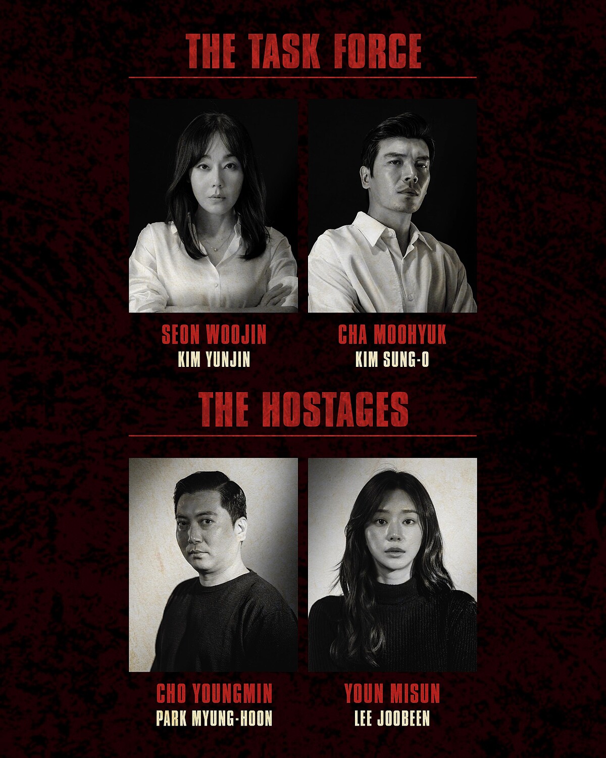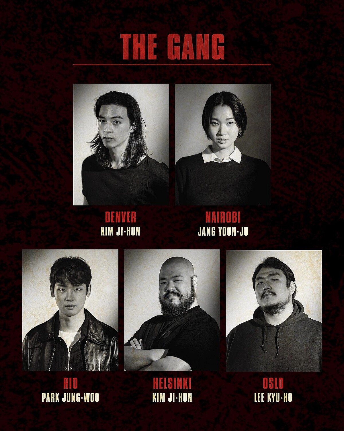 另外李元鍾與金志勳飾演父子「莫斯科」與「丹佛」,張允柱飾演偽鈔專家「奈洛比」,朴柾佑則詮釋團隊當中年輕駭客小鮮肉「里約」。