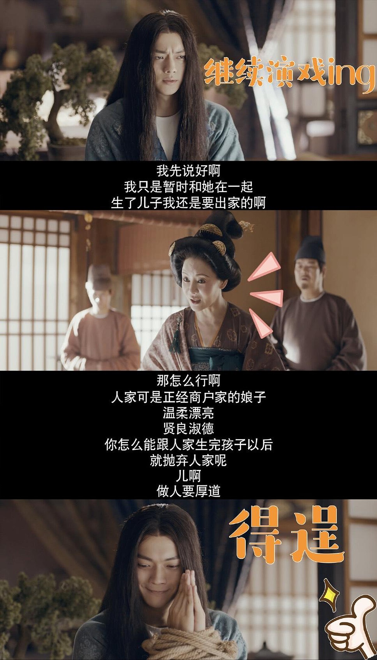娶親不行,出家也不行,盛楚慕只好放大招,他對看守的侍衛說「既然清淨不了六根,我就先清境一根」嚇的盛夫人趕忙出現,盛楚慕看魚餌上鉤,一開始先極力堅持出家,後來看盛夫人態度放軟,就說還是要留下香火再出家,得到同意後又提出只要傅柔,這時驚嚇過度的盛夫人就算不答應也得答應,如果要比詭計陰謀,想來整個長安城沒有幾個人能和盛楚慕比。