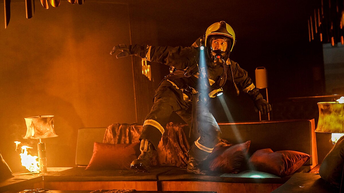 這回播出的看點還有斥資750萬打造的火場重頭戲,引發觀眾熱烈討論,在劇中不慎摔進貨梯井的林柏宏,事前已做動作訓練,揹著超過20公斤的裝備吊鋼絲,摔下後還有各種器材角度需要克服,由於拍攝當下是冬天,得在水中泡好幾個小時,但現場有為他準備暖爐,讓林柏宏相當感謝劇組的保護。他也透露被演員朋友問:「天啊!你自己摔的嗎?」林柏宏說聽到這句話很有成就感,他更笑說:「應該是看起來真的摔很慘的意思!」