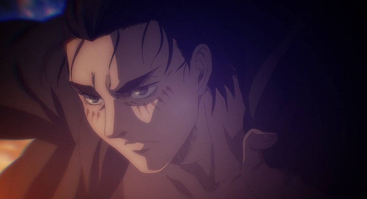 而艾連葉卡變身為「始祖巨人」與萊納布朗「鎧之巨人」再次正面交鋒,兩人展開生死決鬥,但萊納有龐大的瑪雷軍團作為後盾,讓艾連趨於劣勢,陷入危急情況。