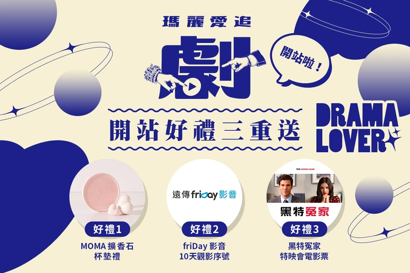開站首月,第一波「分享送好禮」活動(1/19-1/25),瑪麗已經準備好「MOMA擴香石杯墊禮」、「friDay影音平台觀影序號」、「電影《黑特冤家》特映入場券」要來大方贈!只要追蹤《瑪麗愛追劇》粉絲團,公開分享貼文,完成指定步驟,就有機會帶走好禮~讓大家放鬆追劇同時,搭上充滿儀式感的香氛,徹底沈浸在劇中的世界!