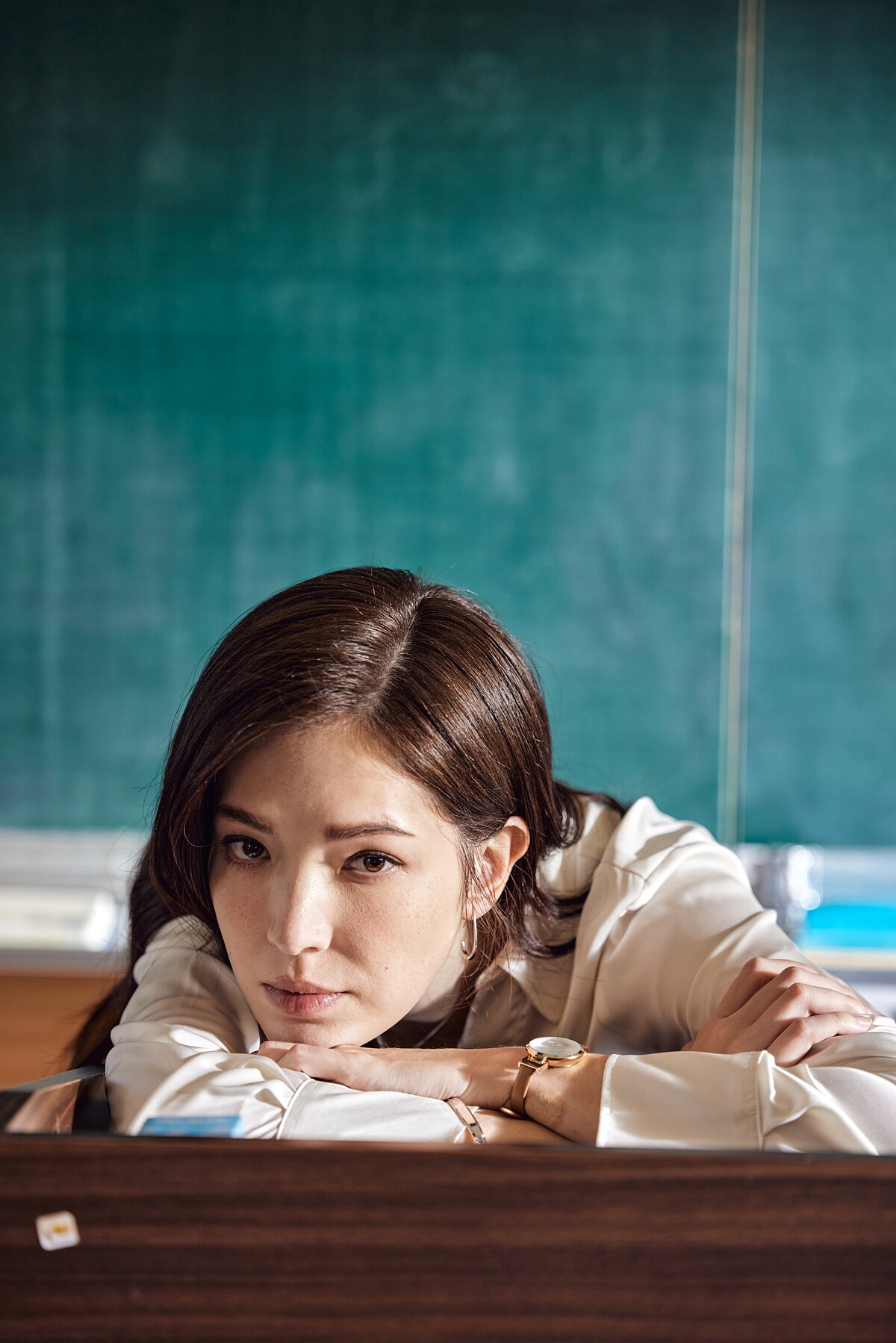 談到劇中角色,許瑋甯透露是首次飾演國文老師,相較於過去拍攝的推理、驚悚劇,並沒有比較輕鬆,「我們這部戲也是上山下海的拍攝,不是風大就是雨大,對我們身體上來說都是很辛苦,心理上也因為每個角色都有各自的心結,都不是容易的。」但她也開玩笑說這次服裝很「火辣」,常常是開高衩窄裙搭配白襯衫,完全符合大眾對於「美女教師」形象的衣著。