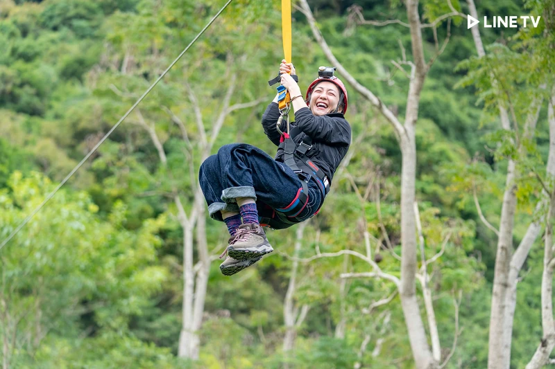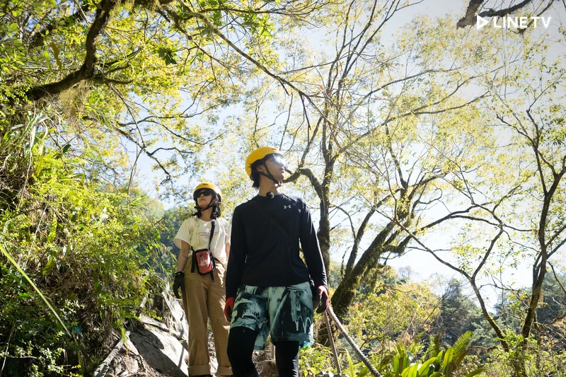 《極島森林》來賓之一的謝欣穎則一起和陳柏霖戴上安全帽,走入山徑修復栗松溫泉步道。