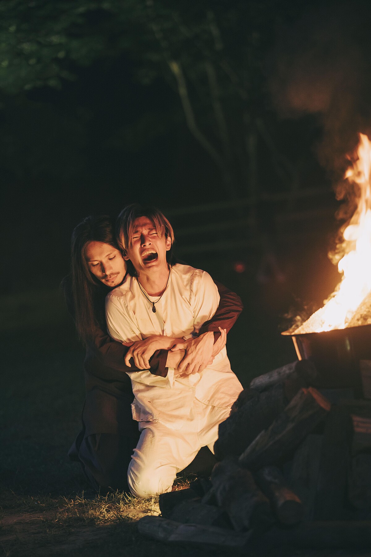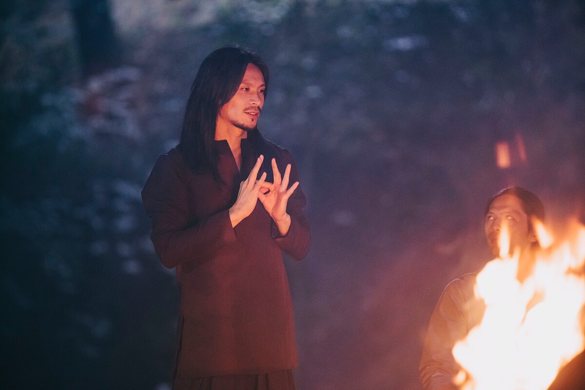 劇中姚淳耀洞悉人性痛點,觀察到每個人寂寞與渴望被愛,一場信眾們在營火前靈修、釋放心靈的群魔亂舞模樣,讓人瞠目結舌,炎亞綸像被打開開關似地痛哭到抽蓄,姚淳耀如讀心般,背後環抱治癒他不安的心。詭異的是,姚淳耀直指能讀取炎亞綸心中檔案,了解他的前世今生與幸福歸屬,於是順勢牽起他的手,畫面相當曖昧。
