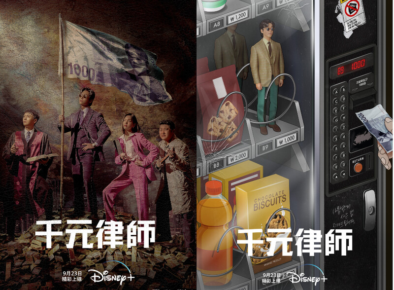 值得一提的還有《千元律師》釋出的視覺海報也很有意思,無論是帶有法國大革命畫風的海報,或是主角在自動販賣機中的設計,都隱約透露出這部《千元律師》著重在顛覆反抗權威與收費低廉的主題,當視覺都如此有創意的時候,就更讓人期待劇及播出會是什麼樣的發展走向了!