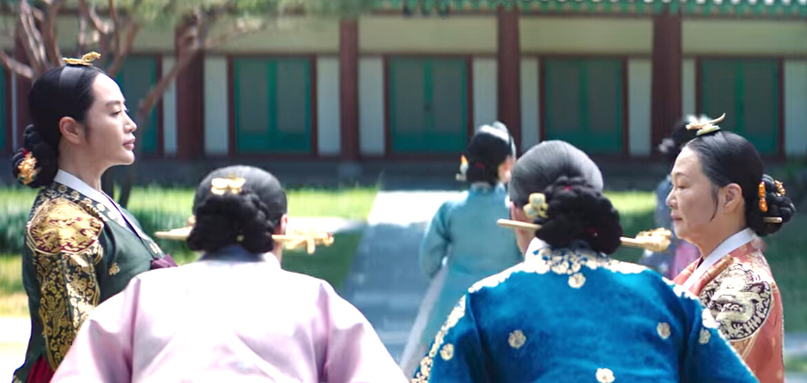 紙包不住火,最終還是讓大妃知道了王世子倒下的事,這正是大妃能夠除去眼中釘的最好時機。當年,大妃栽培了現今君王,也使出了渾身解術,明招暗招全使盡,甚至還有一本秘笈。嬪妃們得知大妃建議的「陪童」(陪王世子讀書的大君)選拔後,紛紛來向大妃討教,大妃趁機把她們攏絡麾下。