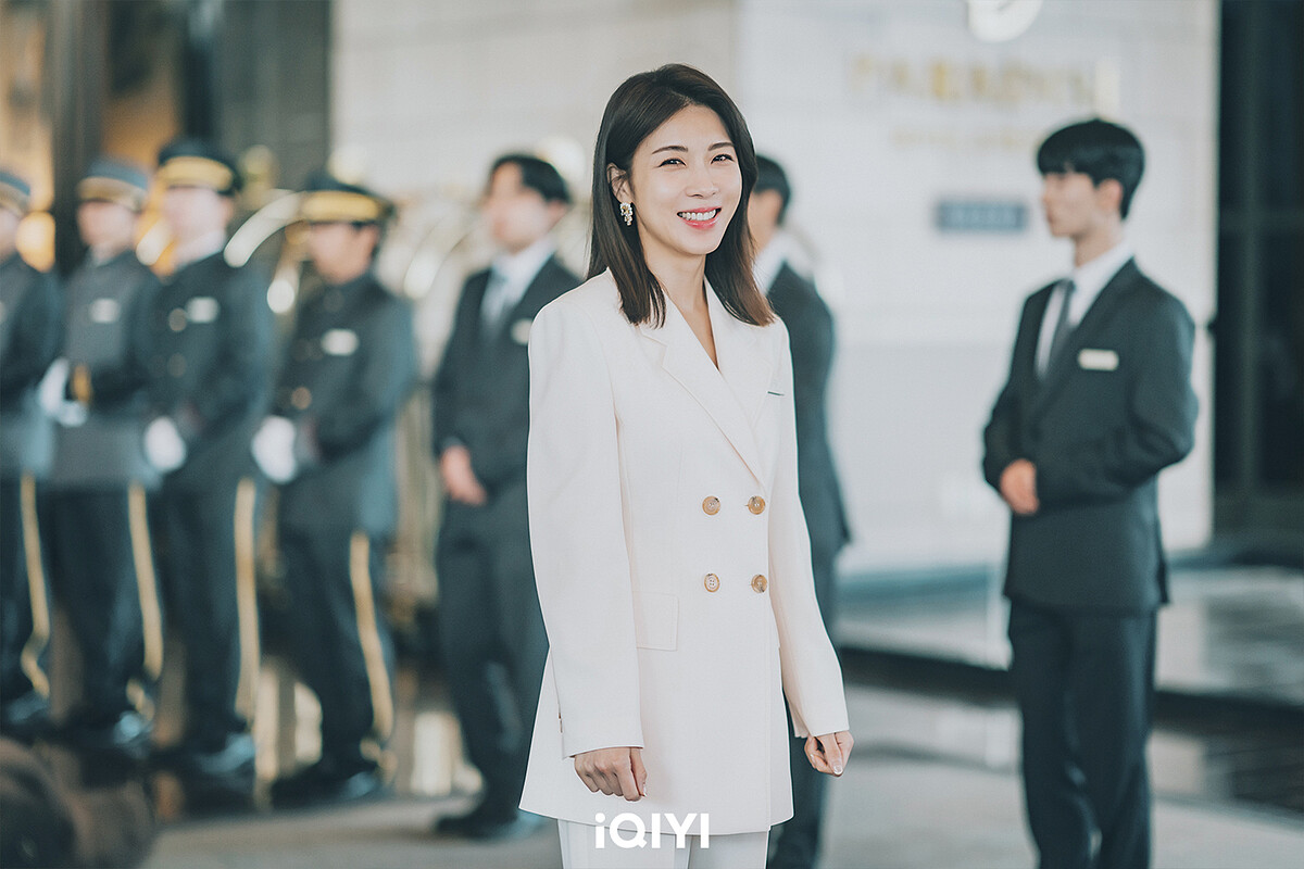 在《謝幕》現代故事線裡,河智苑化身商場女強人,以幹練造型展現強勢氣場,她與同為家族企業大股東的哥哥經營理念不合,為守護樂園飯店不被出售,接班人大戰一觸即發。