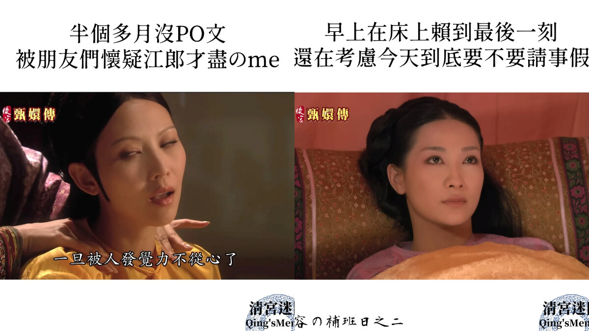 雖是古裝劇,但劇情套用到現今的時事、職場,都相當契合,戲中的台詞金句常被指出能為人生指點迷津,每個人都能從中找到屬於自己的金句,因此被做成梗圖、迷因,有不少粉絲團以《甄嬛傳》為主題開設,契合時事的梗圖說出廣大網友內心話,屢屢掀起熱烈迴響,重播時勢必又掀起一股「甄嬛體」風潮。