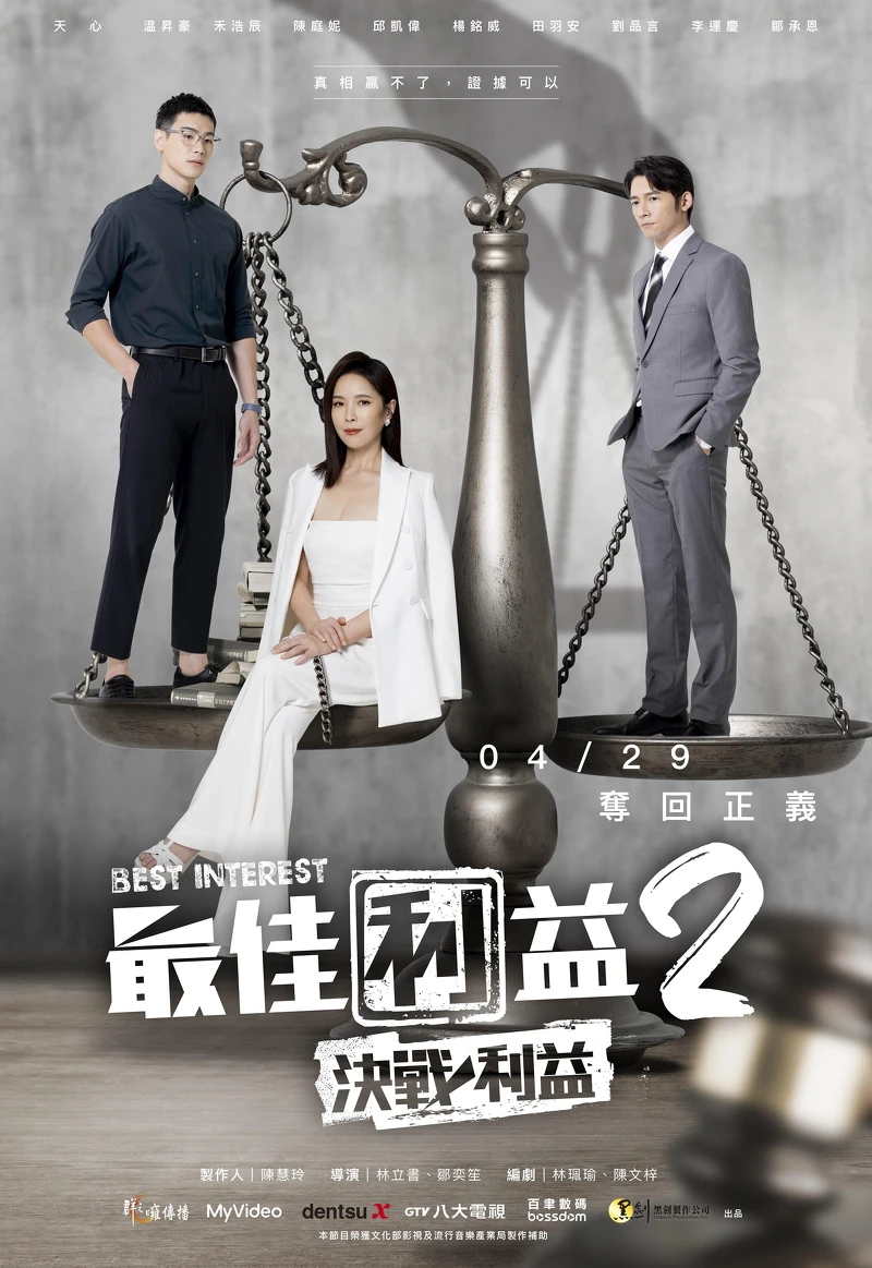 台灣首部律政職人劇IP《最佳利益》2、3季今年4月29日將於公共電視、MyVideo首播,於八大戲劇台4月30日跟播,由《我的婆婆怎麼那麼可愛》金牌製作人陳慧玲操刀、林立書導演和鄒奕笙導演執導,擁有法學背景的林珮瑜、陳文梓兩位共同編劇,在他們的法律系背景下,將更精準地描述台灣社會、法庭及法律界最接地氣的台灣律師故事。