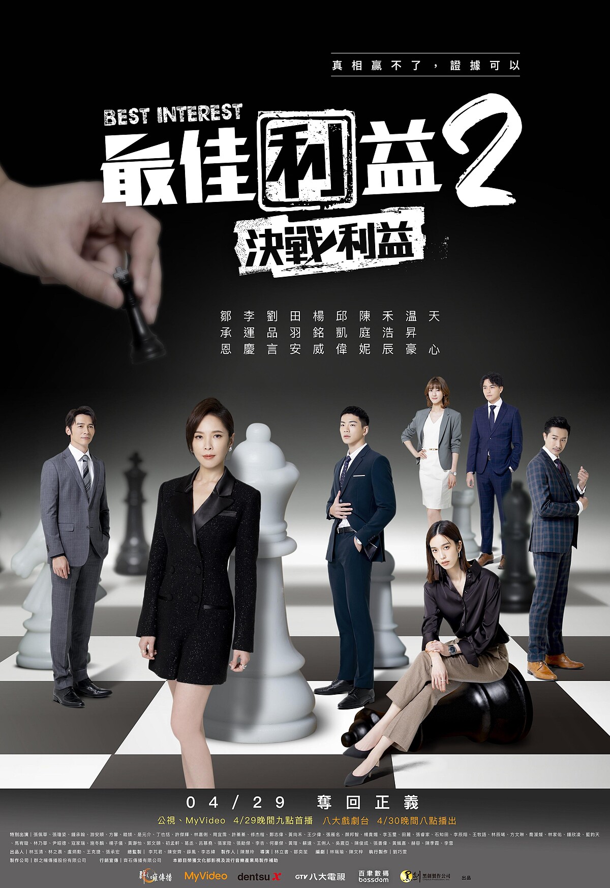 今(9日)釋出正式海報,天心、温昇豪、禾浩辰、楊銘威、田羽安、陳庭妮、邱凱偉分別站立在西洋棋盤,甚至每人背後的棋子顯現各自所屬的派系、勢力,像是彼此各有一席之地,上方魔手正準備放下一枚棋子,究竟暗藏的魔手為何人?期待看見身處於灰色地帶的律師們,如何為當事人爭取「最佳利益」。今日也發布3分鐘正式預告,揭開三大台灣血淚歷史案件,包含酒駕肇事逃逸、男性侵未成年少女必有罪、加害者家屬遭惡意恐嚇等家庭悲歌,正式預告一釋出點燃觀眾熱烈討論劇情。製作人陳慧玲也表示:「撰寫第二、三季劇本時難度變高的更高了,加上製作團隊的自我要求,希望案件的突破點要與過去不同,這次不只訴說被害者心理,更能看見加害者家屬所面臨的困境,驚悚面的背後還藏有滿滿的淚水與心疼、心酸,也帶來很多的省思,期望能帶給觀眾更多不一樣的想法。」