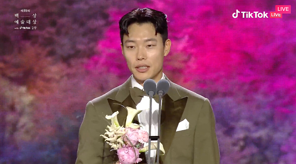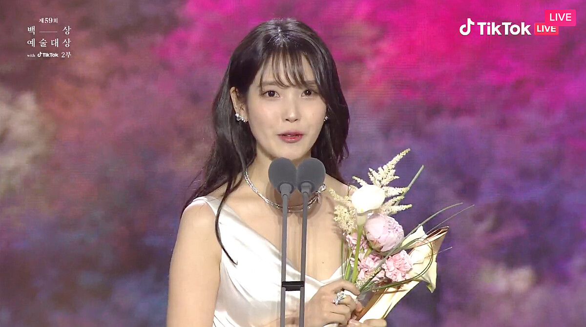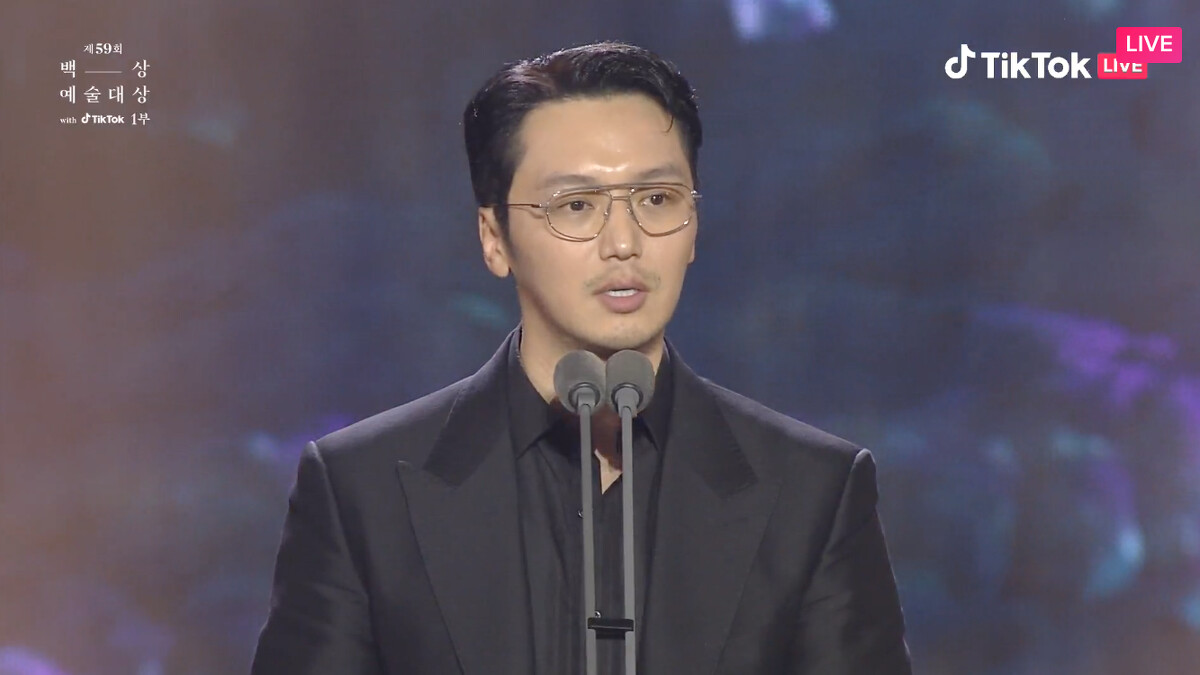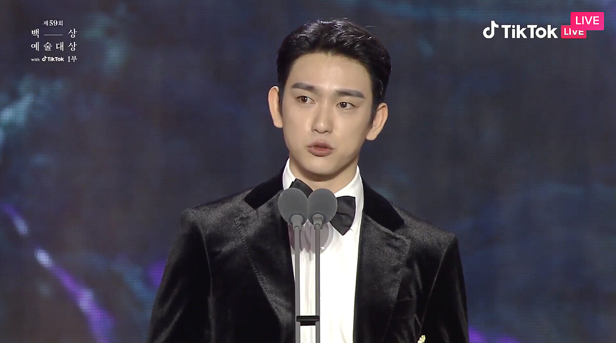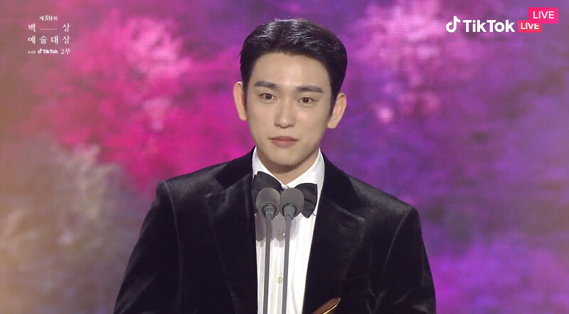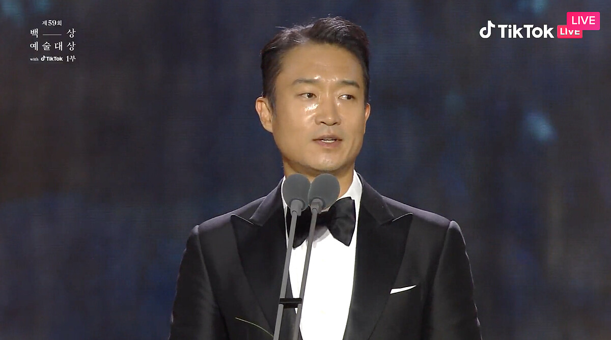 我出道時在這裡拿了新人獎,正好鄭雨盛導演也在台下,不知道該怎麼表達我的感謝,每次作品完結之後,我最近感受到的,我失誤時都包容我,我做錯時都原諒我,很感謝。謝謝愛惜我、原諒我的各位觀眾。