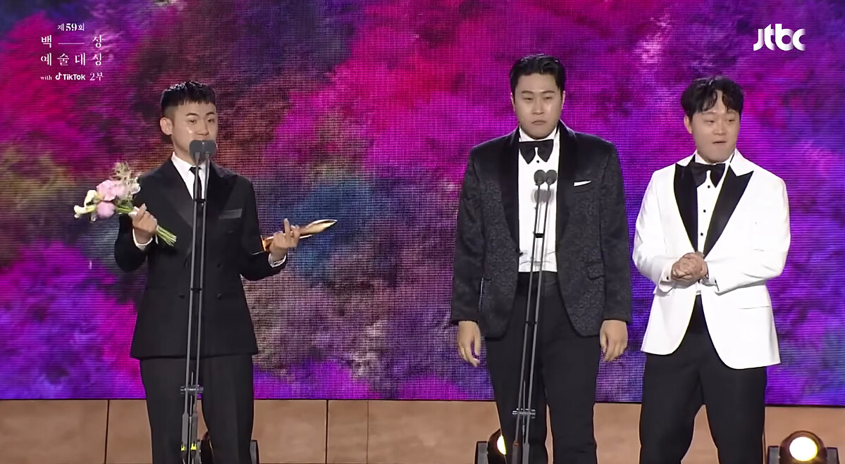 每次錄完綜藝節目回家後,我從沒想過「今天做得很好」、「感覺話都說得很好」、「非常滿足」,反而是想著「當時幹嘛那樣呢?」、「早知道不說那些話了」後悔的夜晚更多了,謝謝給我這個獎。另一方面,我感到很不好意思,在座的前輩們一定都知道,綜藝節目不是能單獨一個人做到的,我覺得是因爲(在節目中)有能丟哏接哏、幫忙笑幫忙哭、做出反應的同事和前後輩們自己才能獲獎。所以我絕對不會掉以輕心,我會在非常辛苦的日子裡,好好利用人生中的痛苦和悲傷作爲養分。最近真的有很多人跟我說,因為我才能多了很多歡笑所以謝謝我,聽到他們那麼說其實是我更感謝。