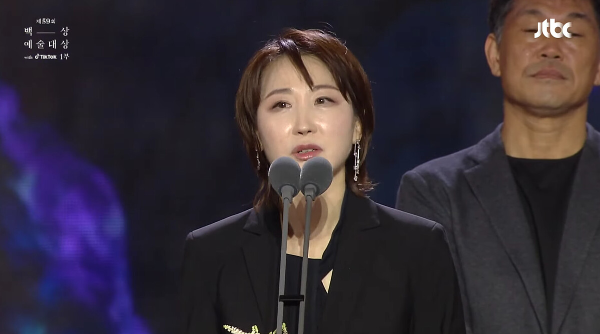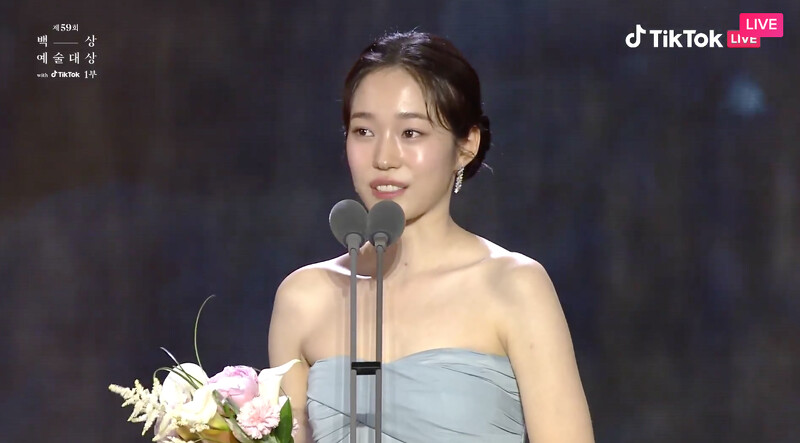 非常感謝給了我大獎。 謝謝給了我機會的金銀淑作家、導演。光是能夠一起參與本劇就已經很榮幸了。 感謝慧喬、廉惠蘭前輩、我的加害者朋友們還有到晛,溫暖地接受了我的不足。對我來說,朴涎鎮是一個挑戰,害怕自己會失敗。至今都還害怕演戲的我總是感到挫折、自責,偶爾會有「我是不幸的嗎?」、「我想做的事和擅長的事不一樣嗎?」這樣的想法。所以今天想在我尊敬的前輩和同事們面前對自己說:「作爲涎鎮而活,妳非常辛苦,妳也做得很好。你好帥,涎鎮。」我會努力成爲無論怎樣都能演好所賦予的作品和角色的演員!