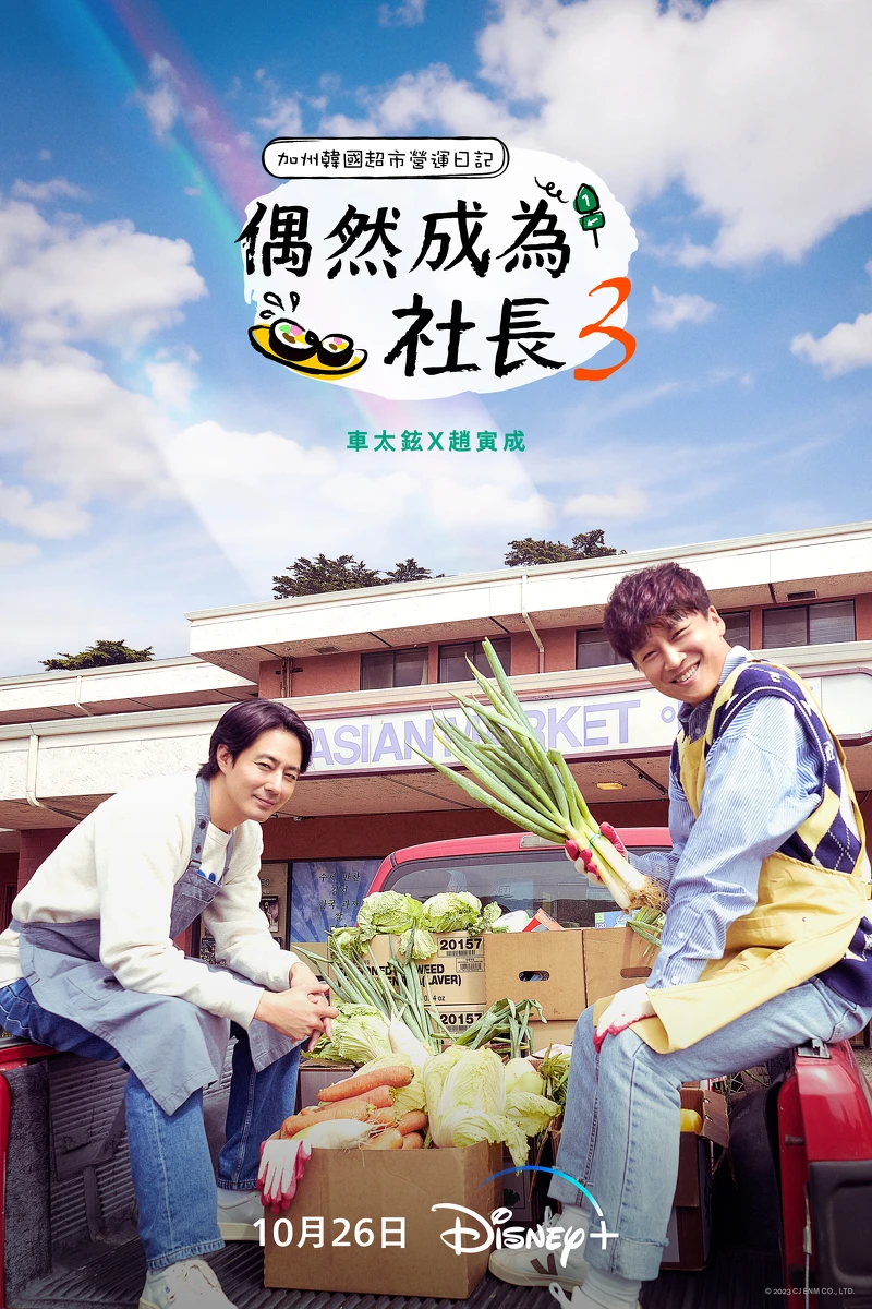 揮別首爾五光十色的演藝圈日常與熟悉的都市生活,在韓劇《MOVING 異能》影集播畢後,韓國大勢藝人車太鉉、趙寅成飛越半個地球來到美國加州寧靜愜意的濱海城市的蒙特雷市,在實境節目《偶然成為社長》第三季要在這裡經營一家「韓國超市」。原本的店主終於迎來久違的長假, 「代理社長」們將像普通職員一樣,學習控管產品進出貨、整理貨架、並為當地居民精心挑選各種美味的小吃。