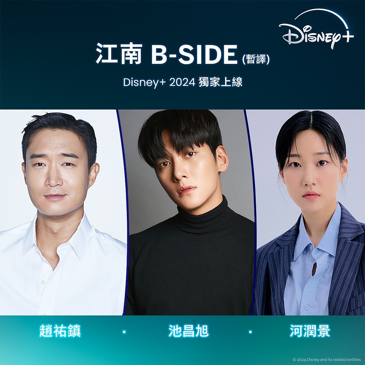 過去飾演過皇帝、魔術師、幫派臥底、天氣預報員等多元角色,男神池昌旭將在新劇《江南B-Side》中飾演黑暗解決師,加上趙祐鎮飾演的刑警外,而在《非常律師禹英禑》中備受矚目的河潤景,也將在劇中化身擁有火熱一面的檢察官,另外還有曾與池昌旭一同演出《惡中之惡》,並奪下百想最佳女新人的BIBI,也再次因《江南B-Side》有戲劇合作。
